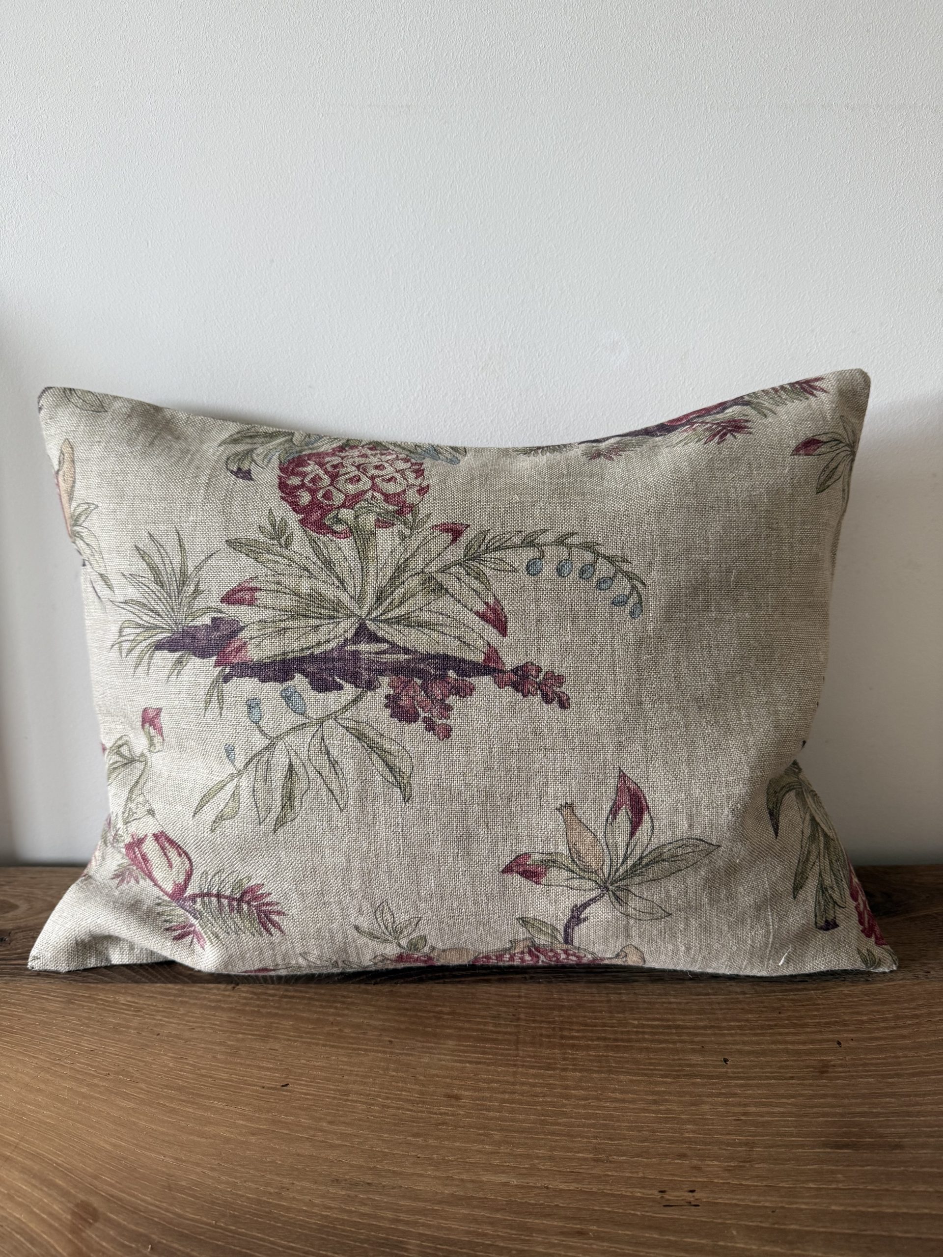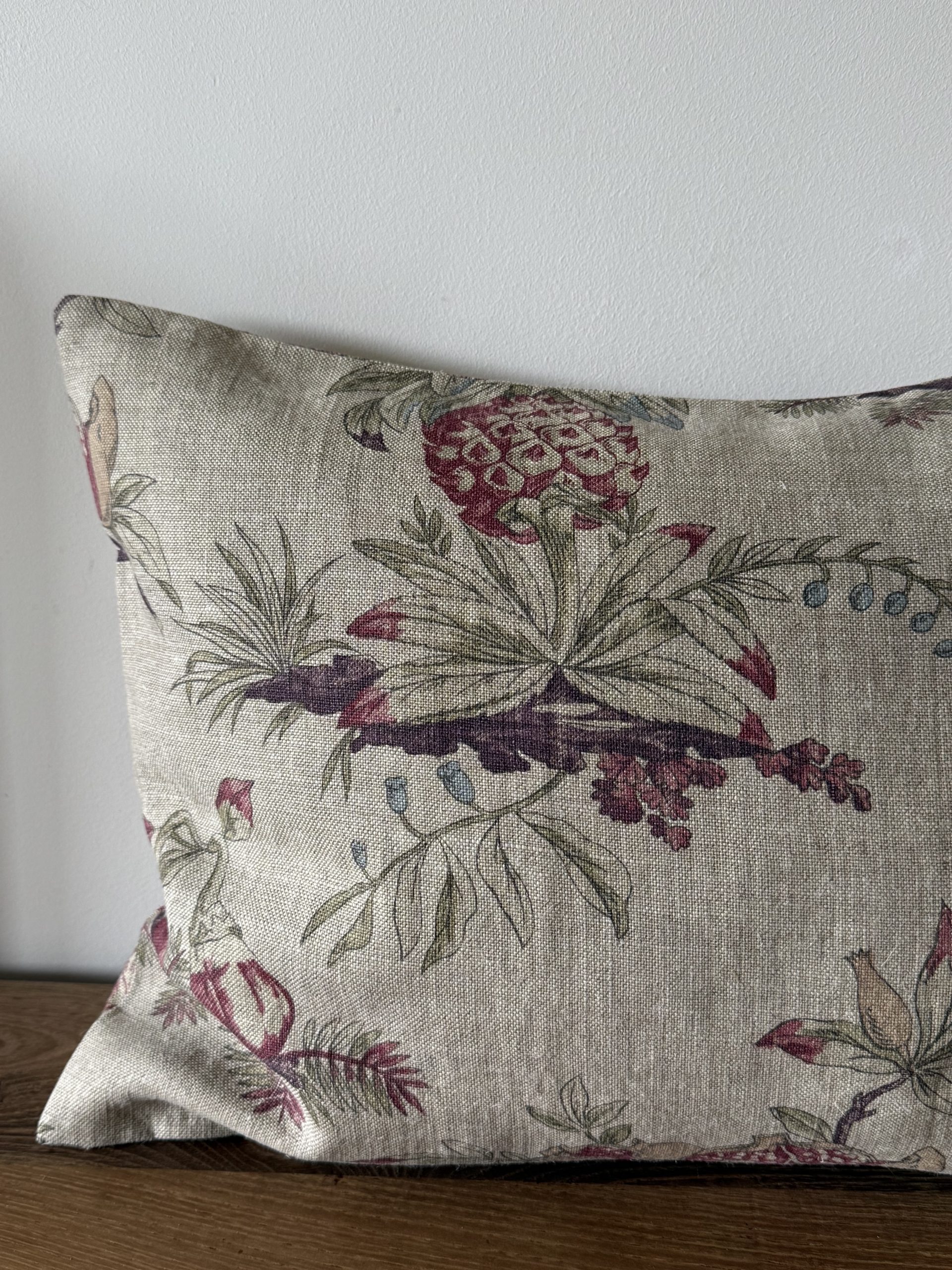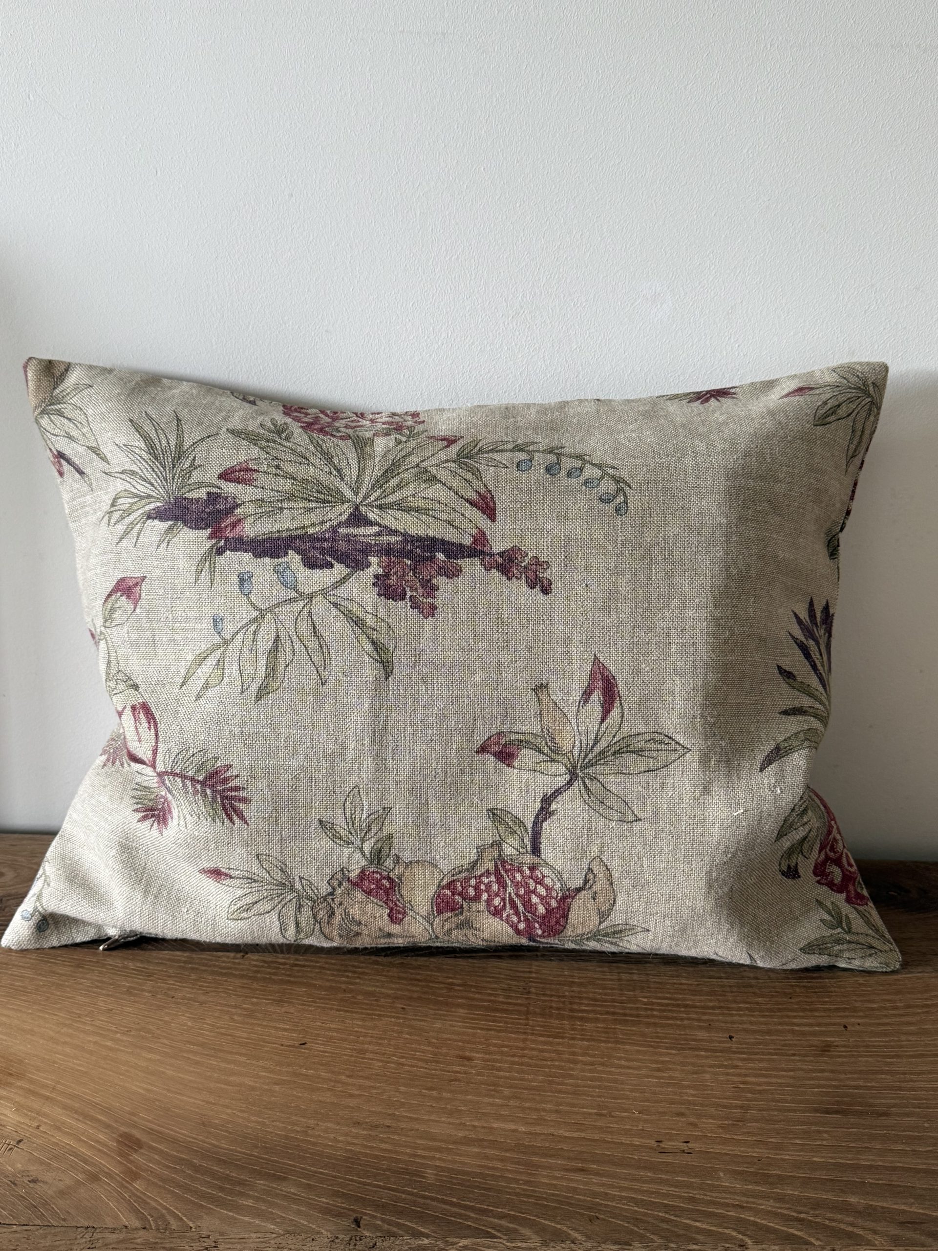 Almohadón de estampado color lino y granate. Tejido lino 100%.
