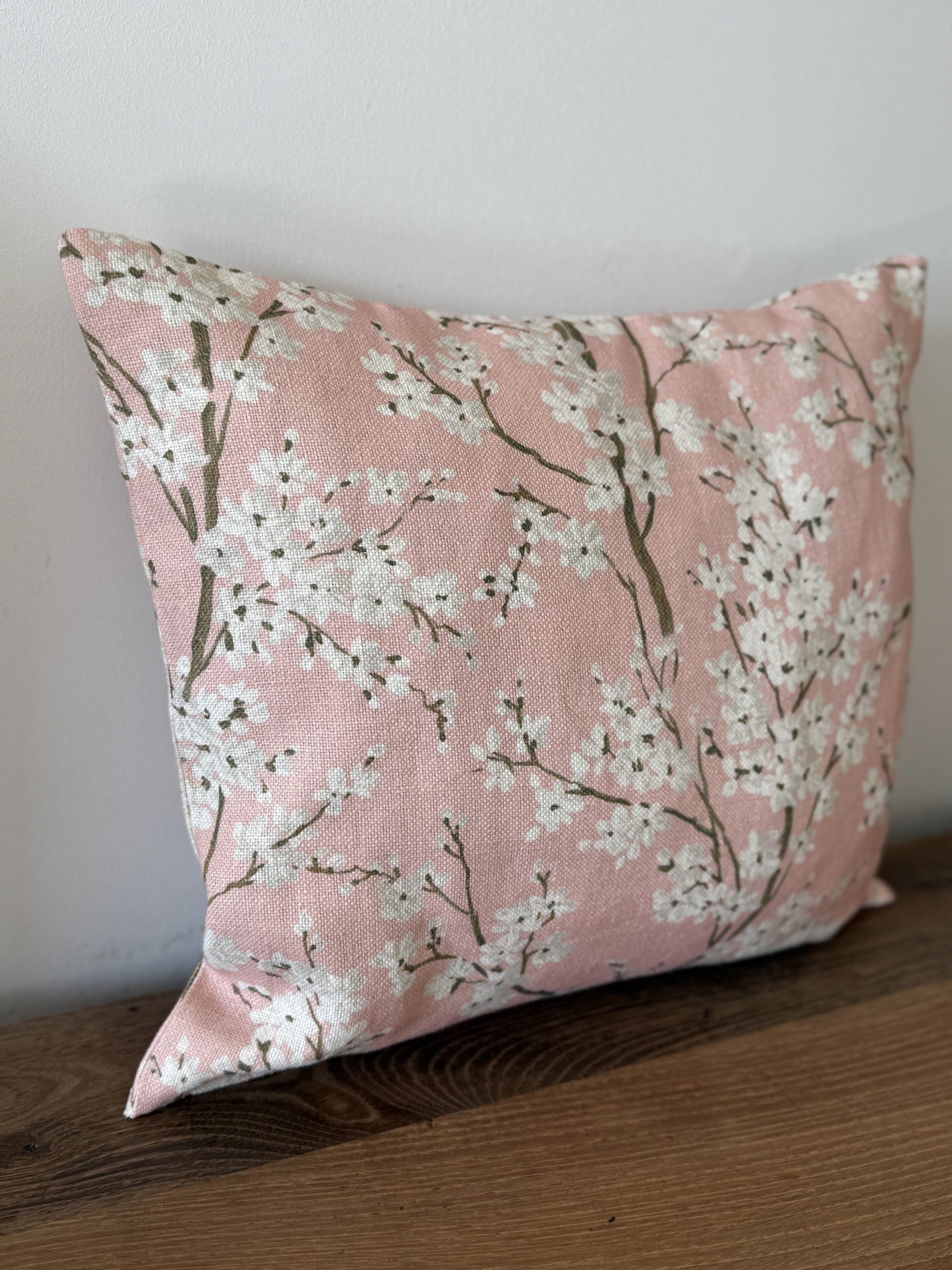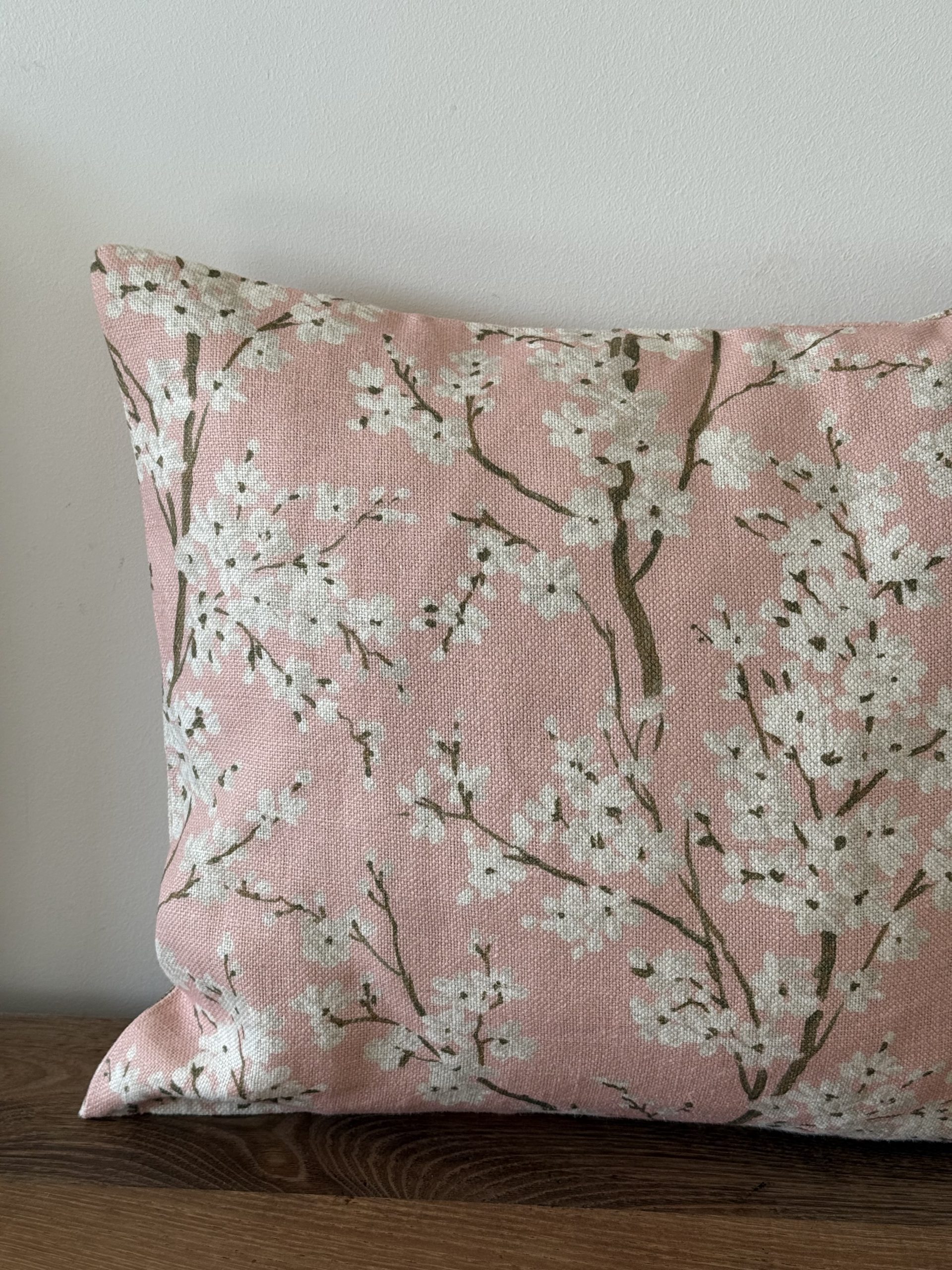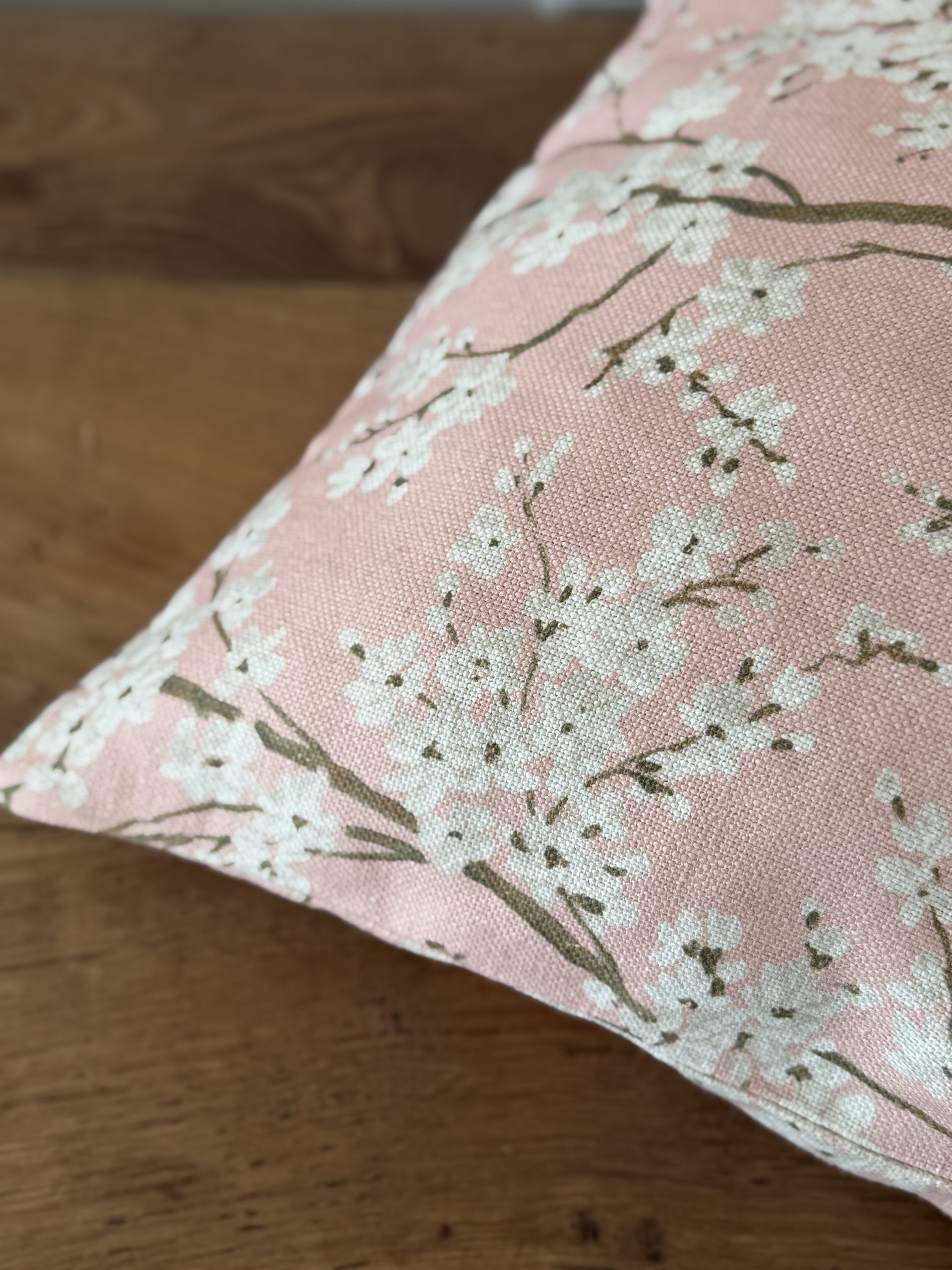 Precioso almohadón estampado rosa, con una tela de lino, 100 %.