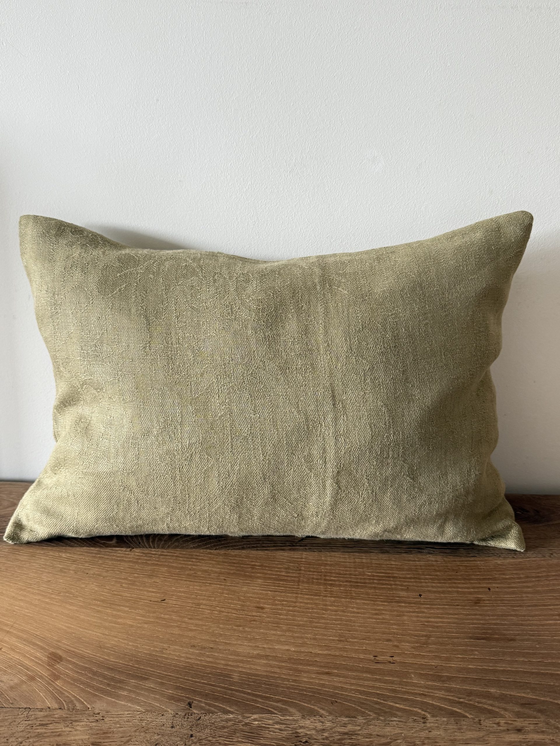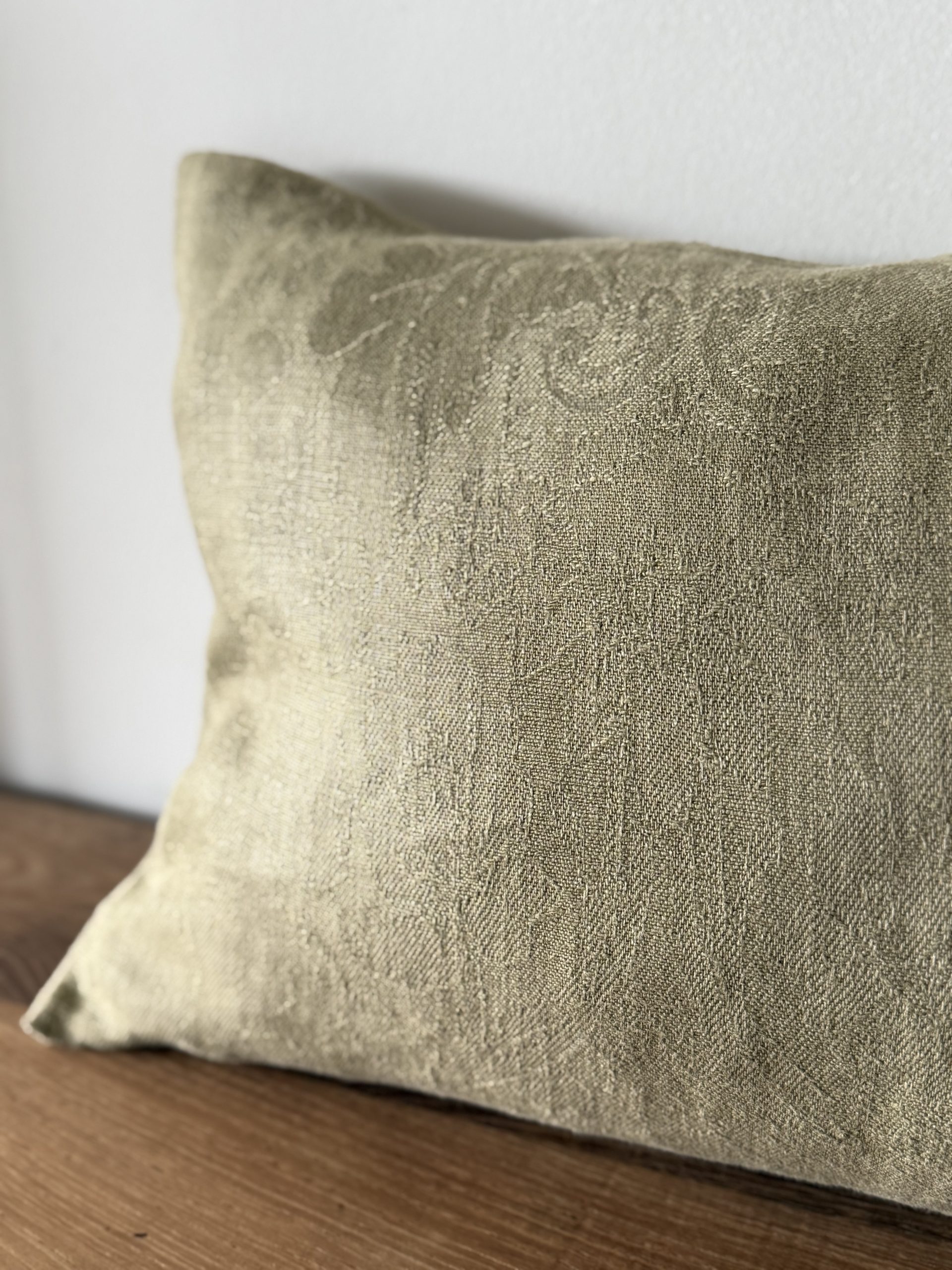 Almohadón confeccionado con una tela 100 % lino. Un tejido de damasco que crea un dibujo intuitivo.