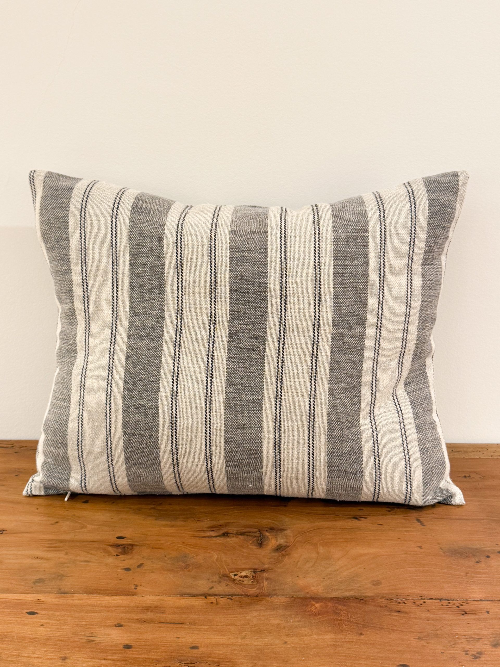 Almohadón de rayas en gris.