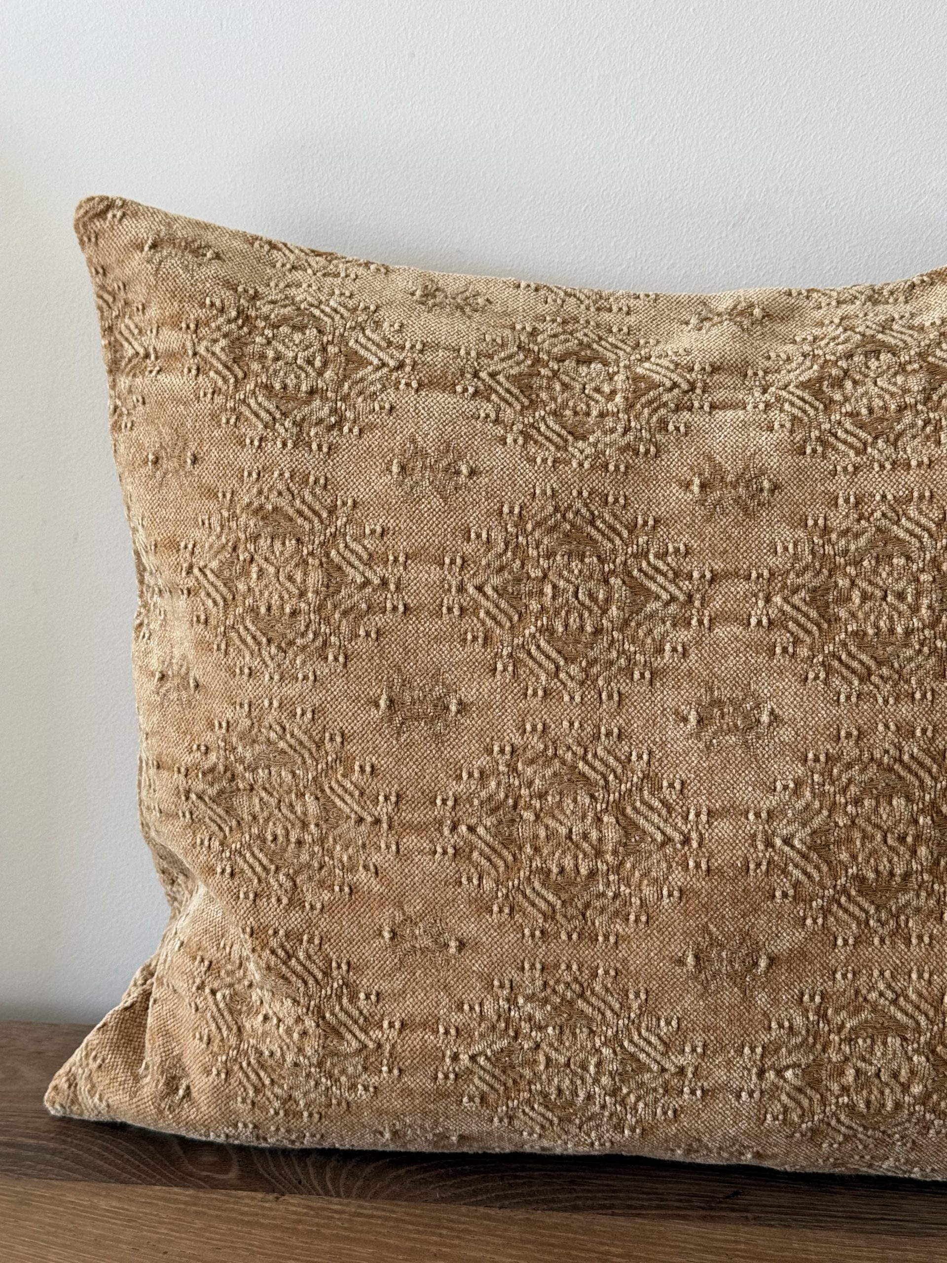 Exquisito tejido con relieve y color arena.