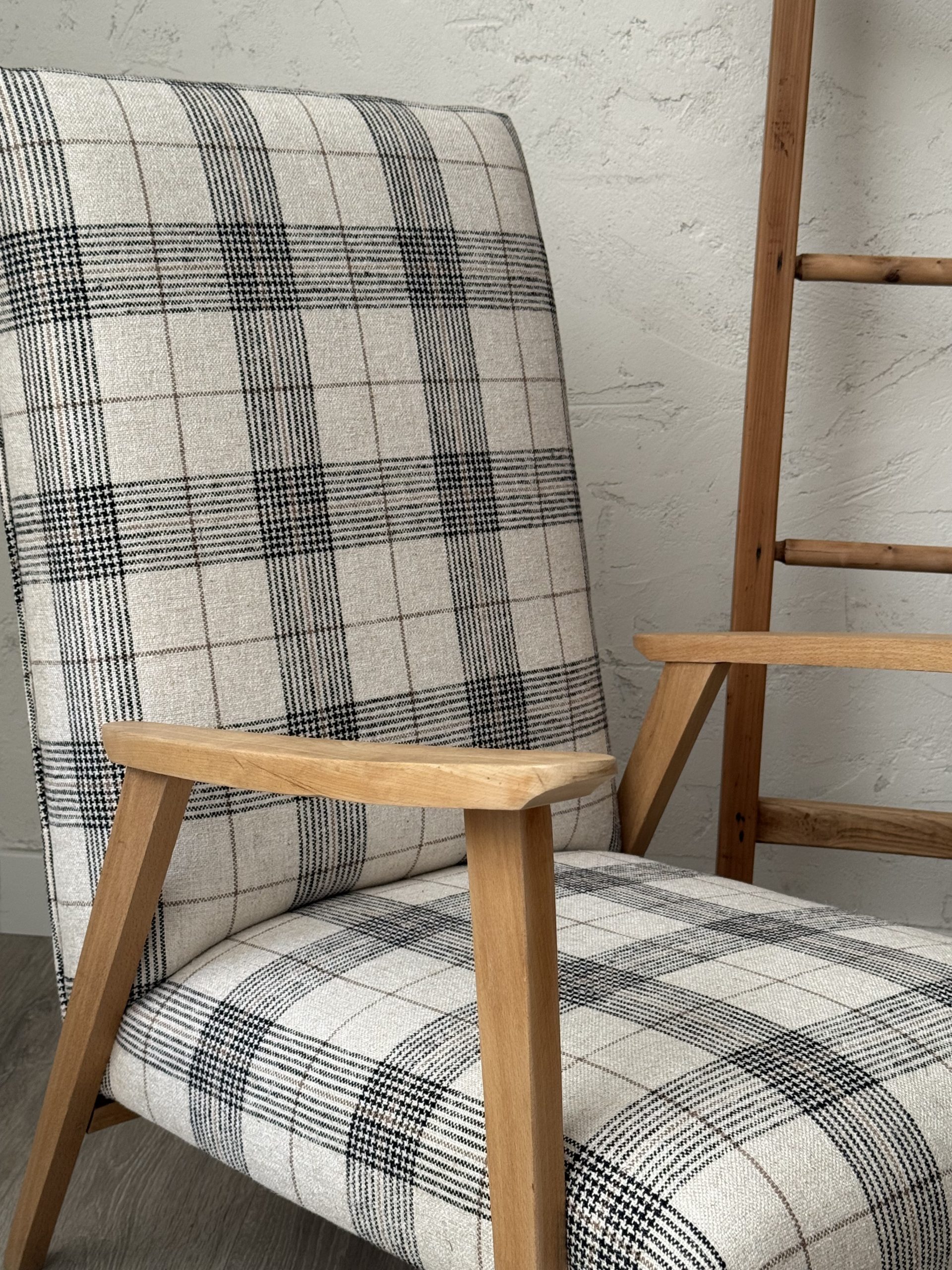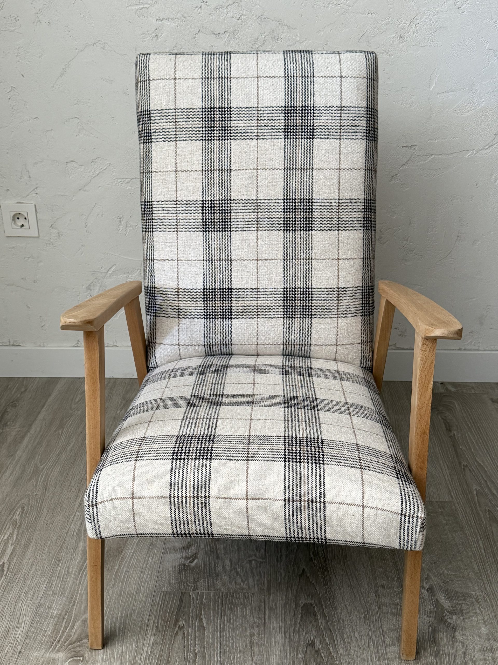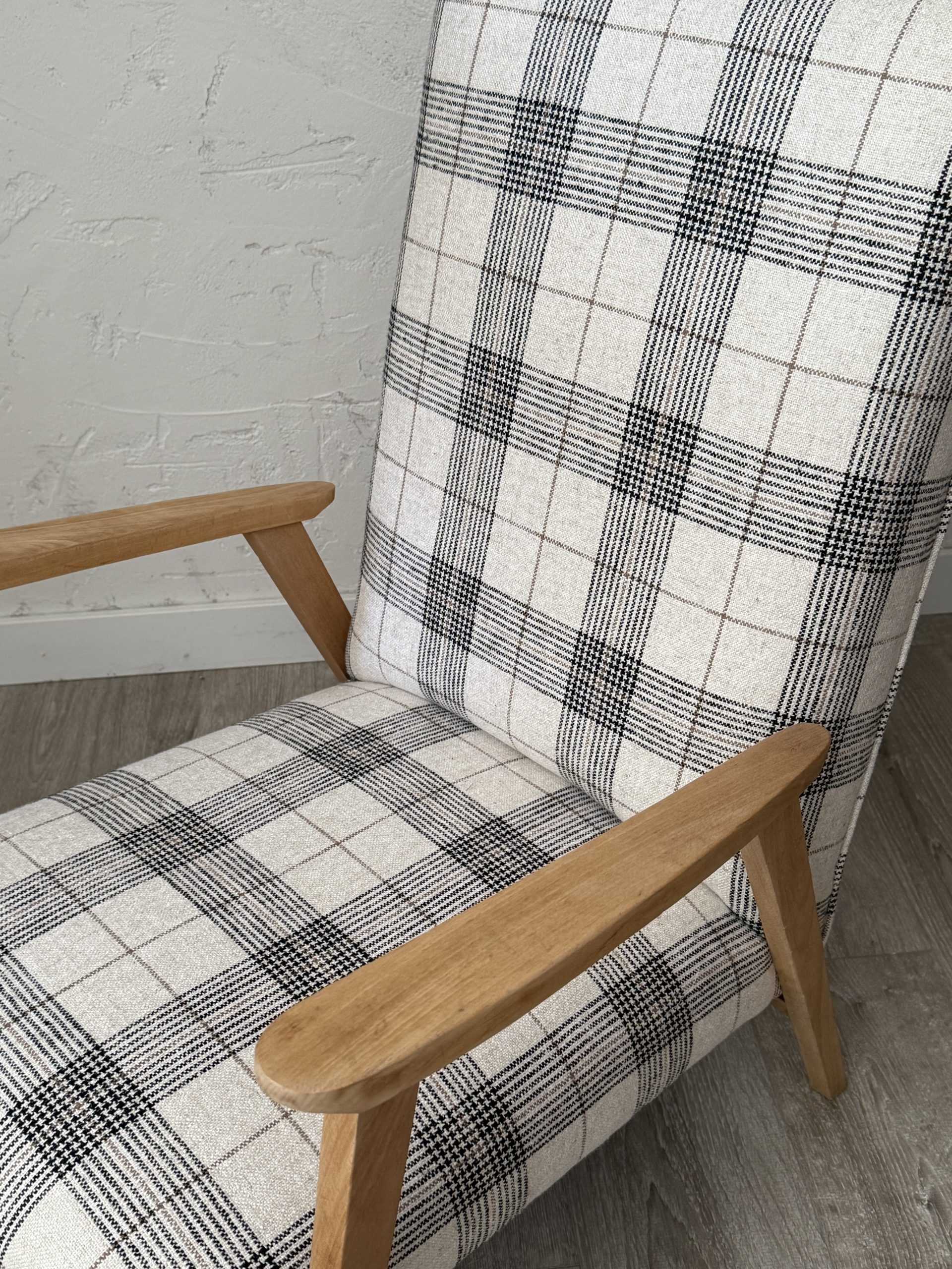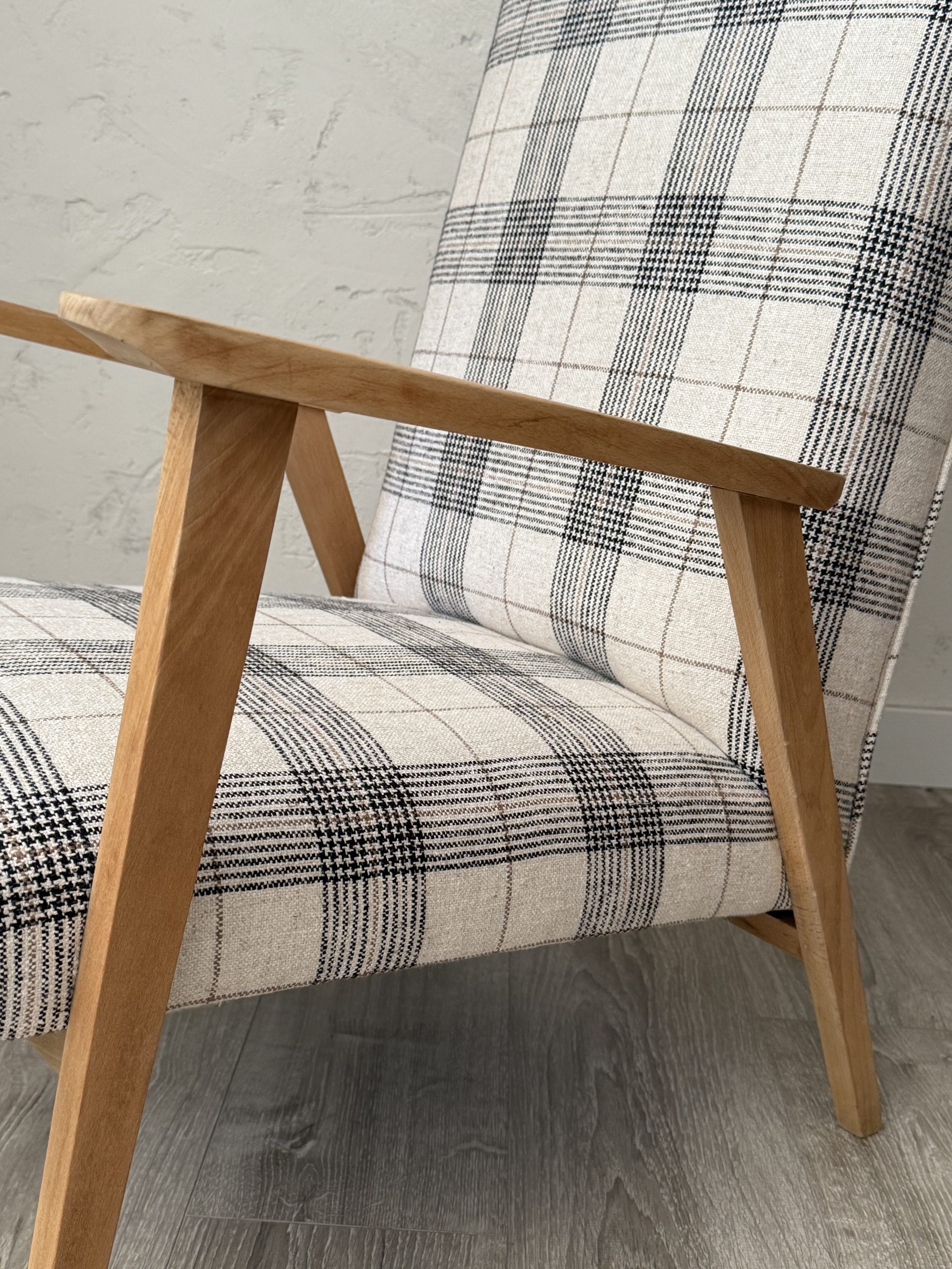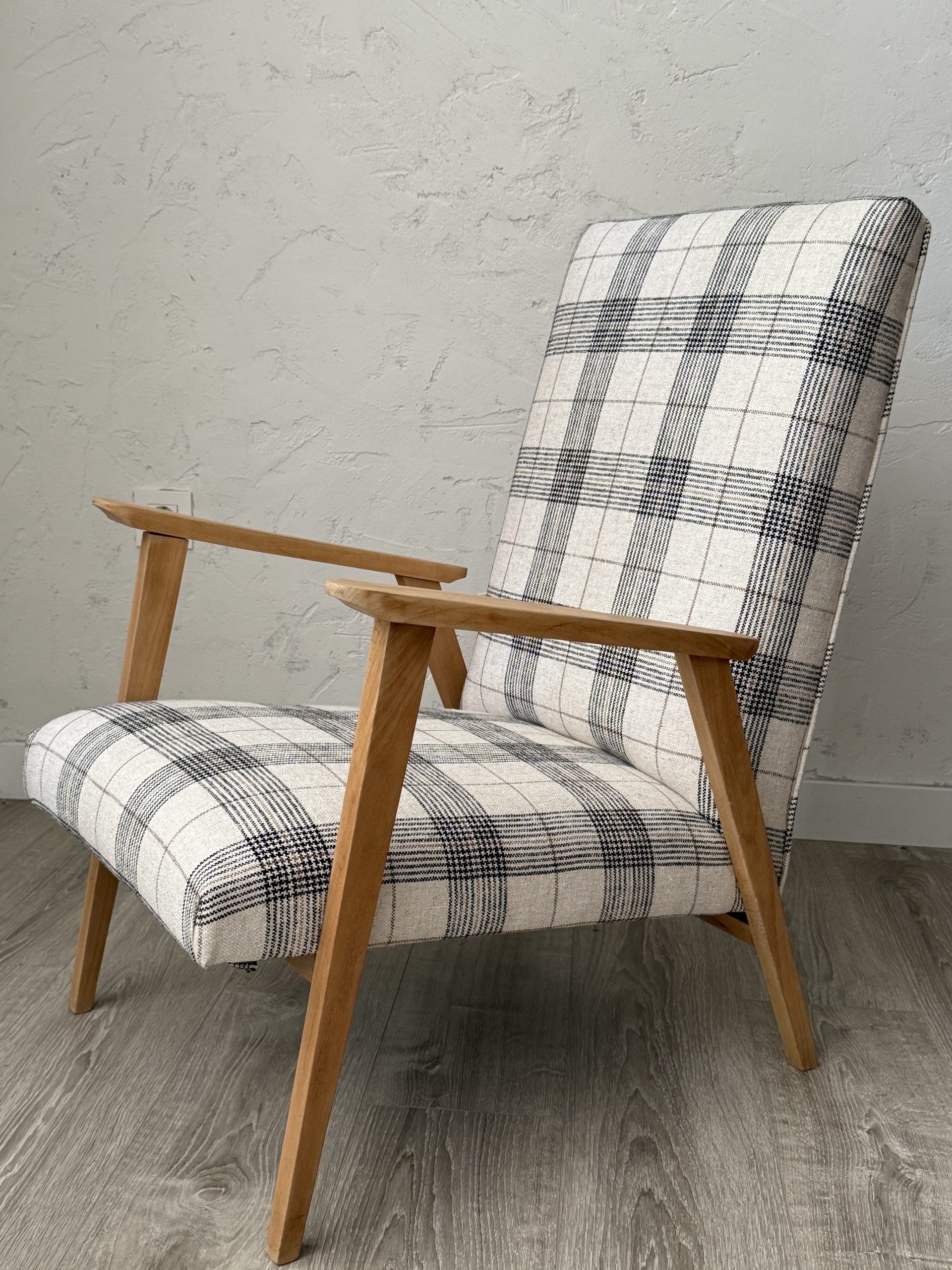 Butaca Midcentury recién restaurada y tapizada con fantástico tejido de alta gama