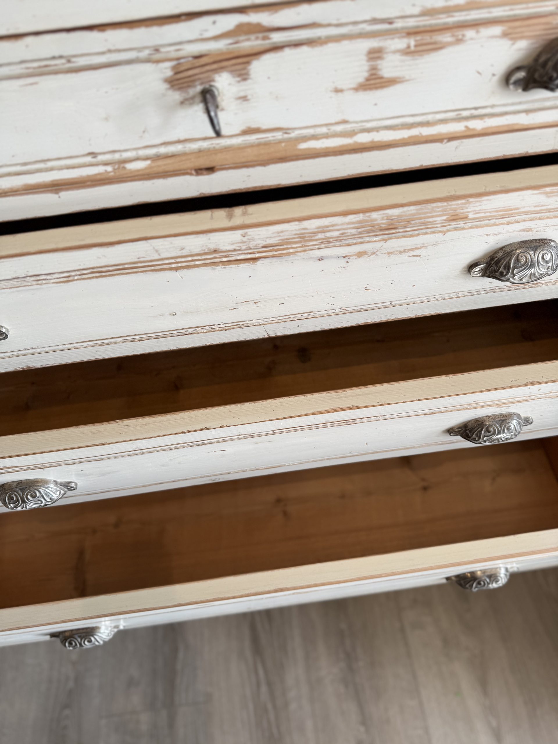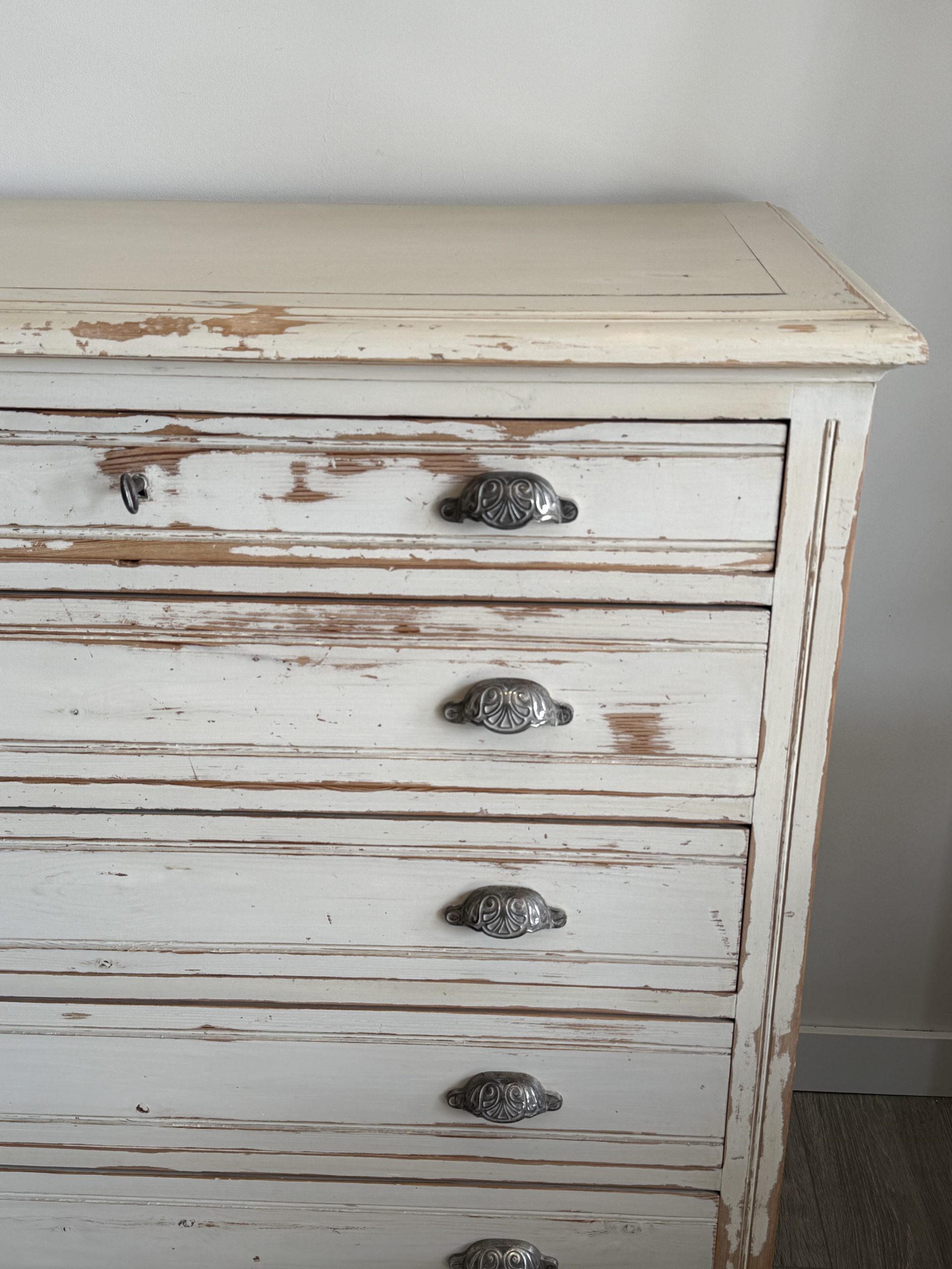 Comoda antigua francesa con patina original. Madera maciza de pino antiguo francés.