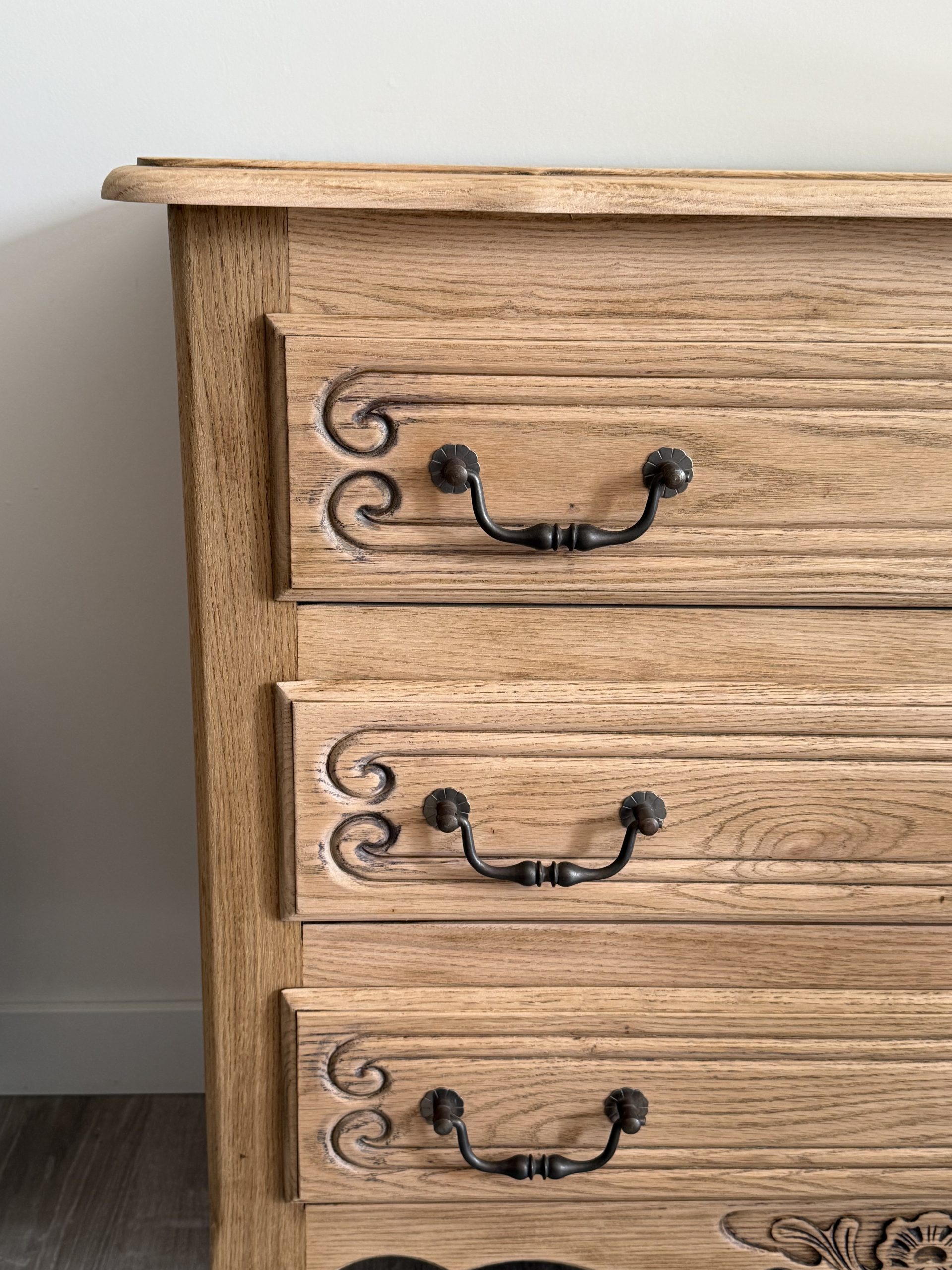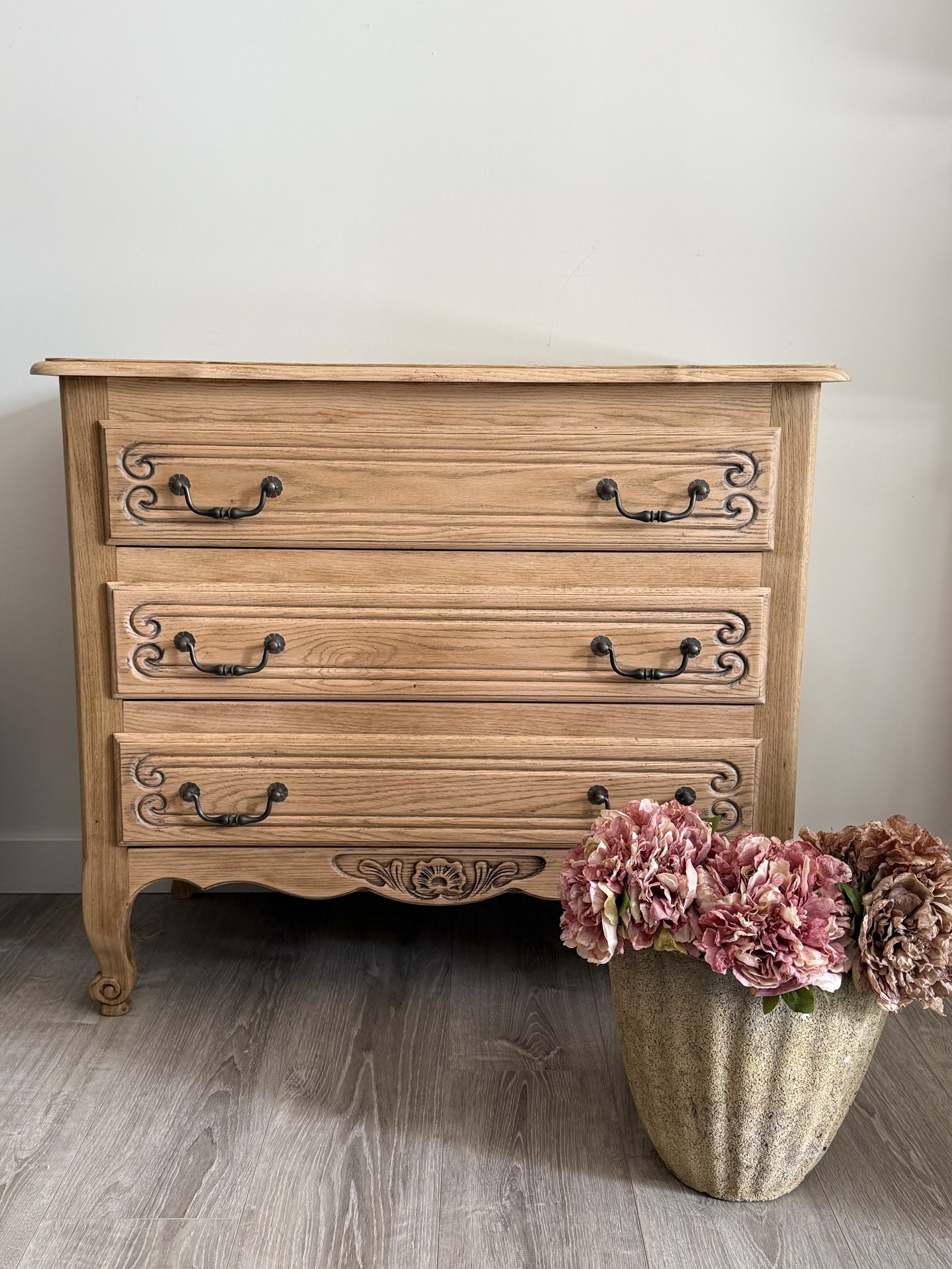 Se ha realizado la restauración en el taller con un acabado de madera muy natural, el resultado es esta pieza que querrás llevarte a casa.