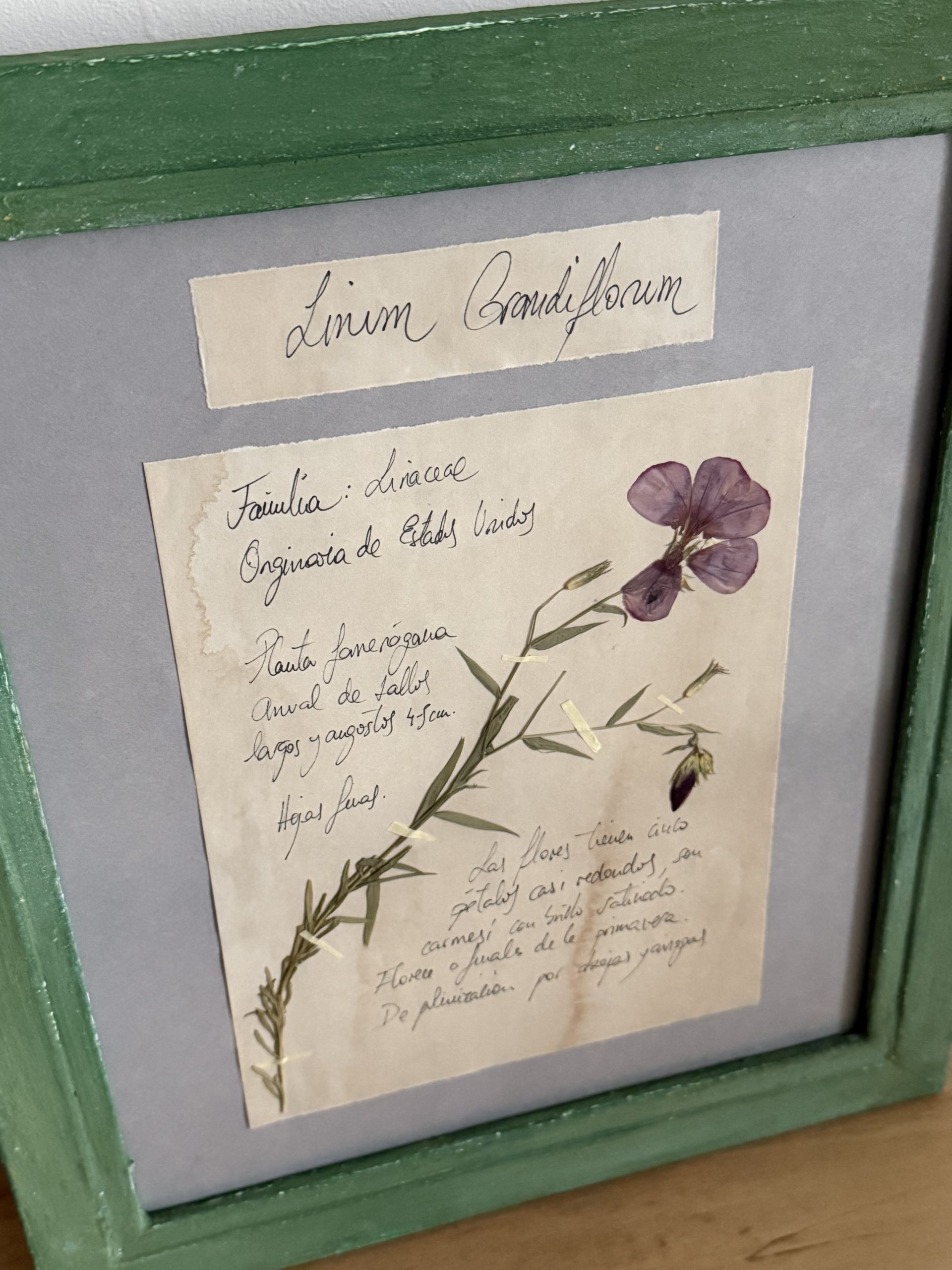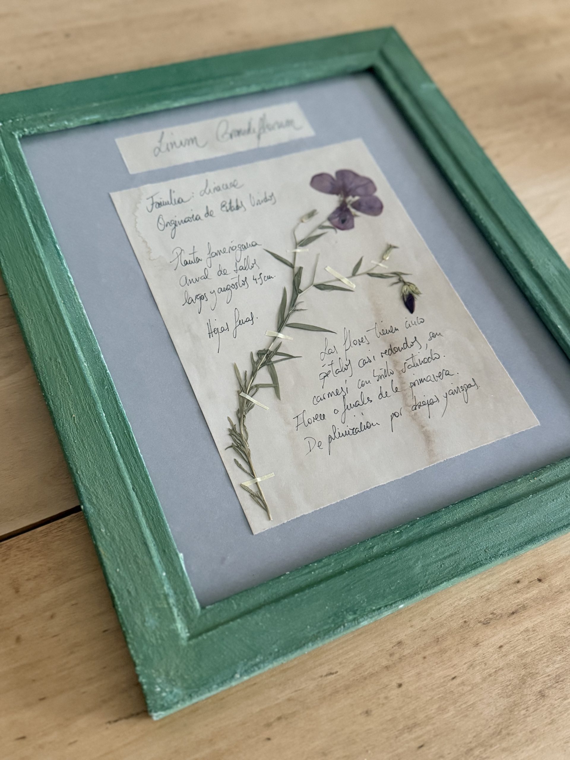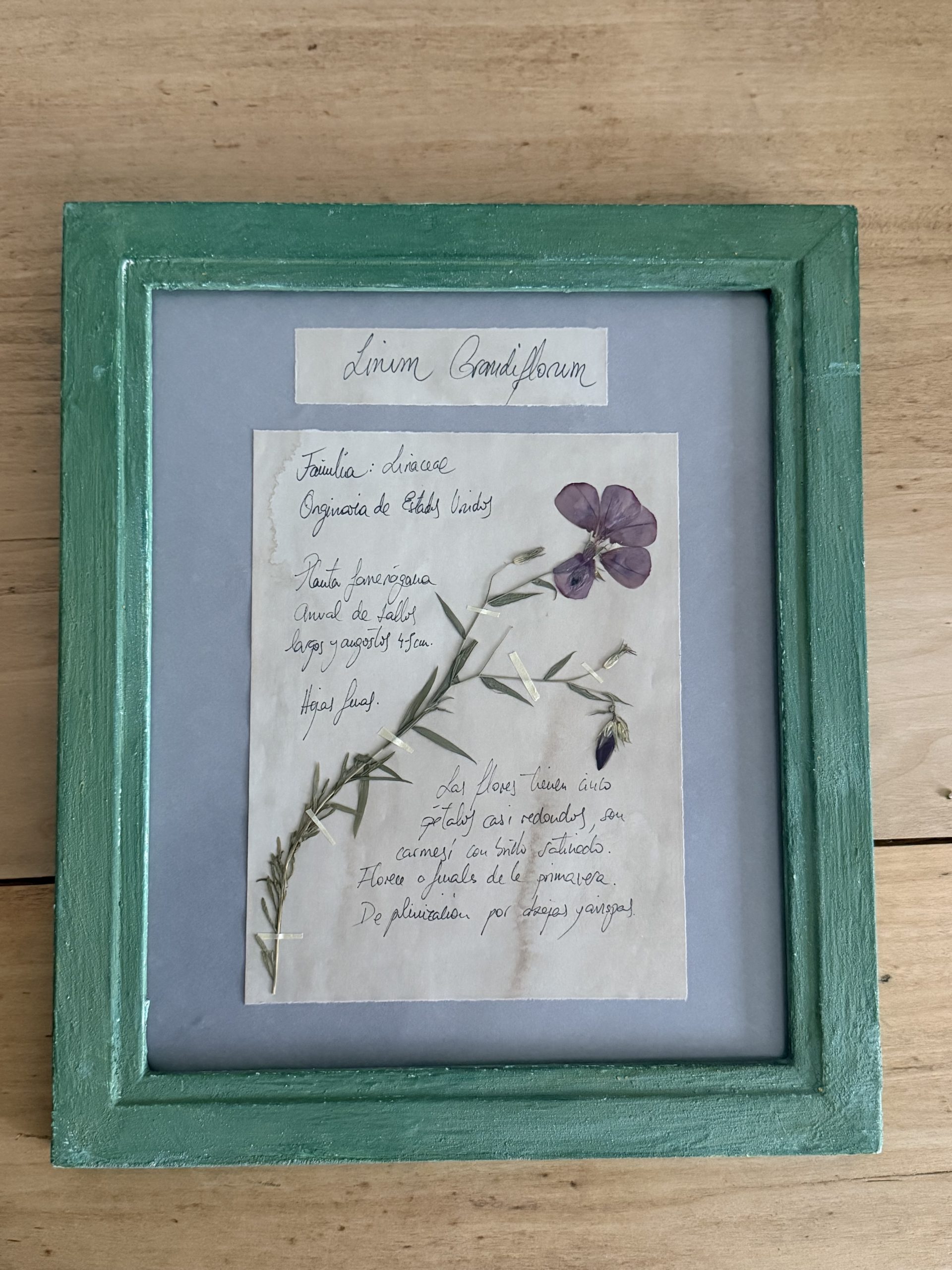 Herbario “Linum Grandiflorum” realizado en nuestro taller.