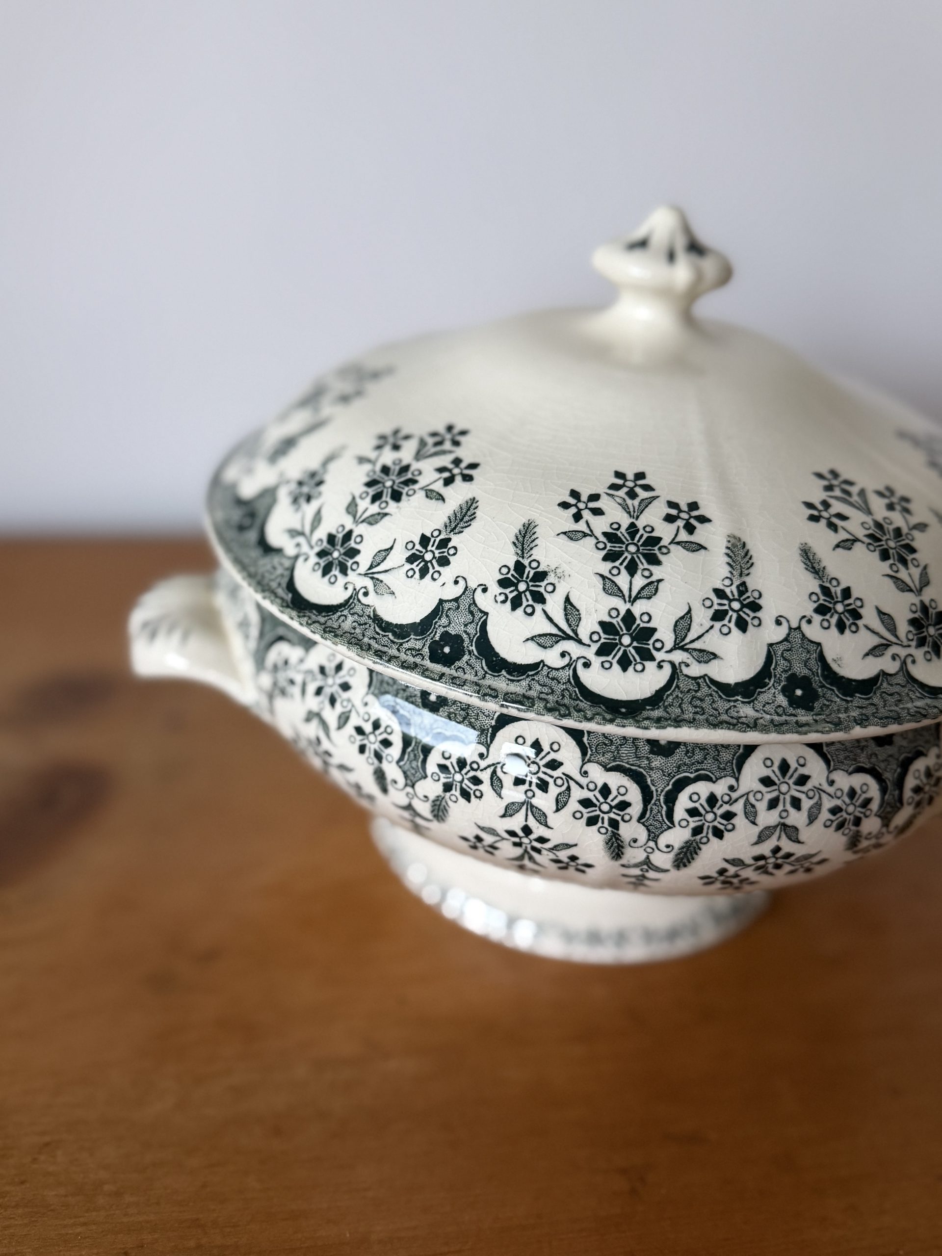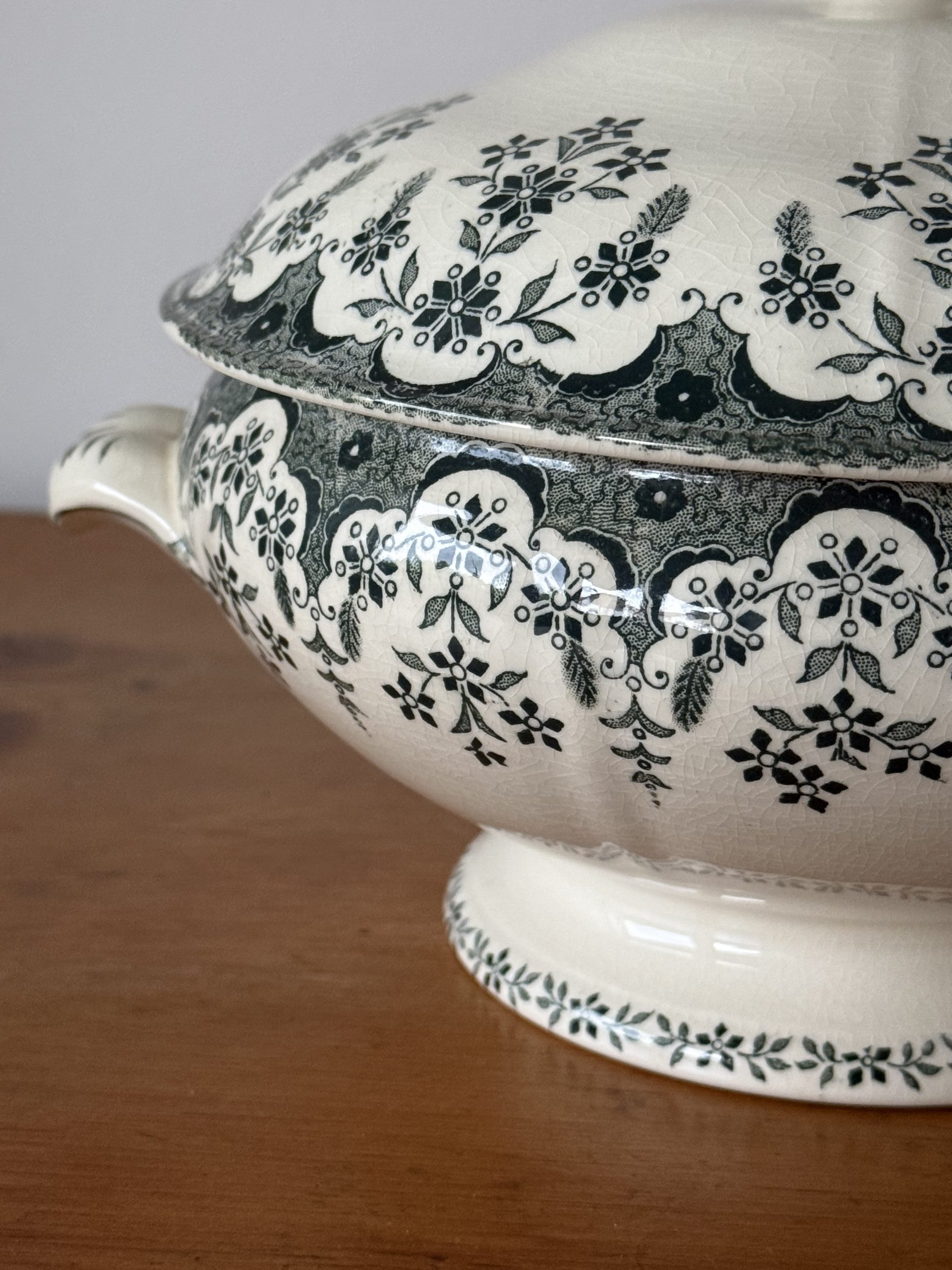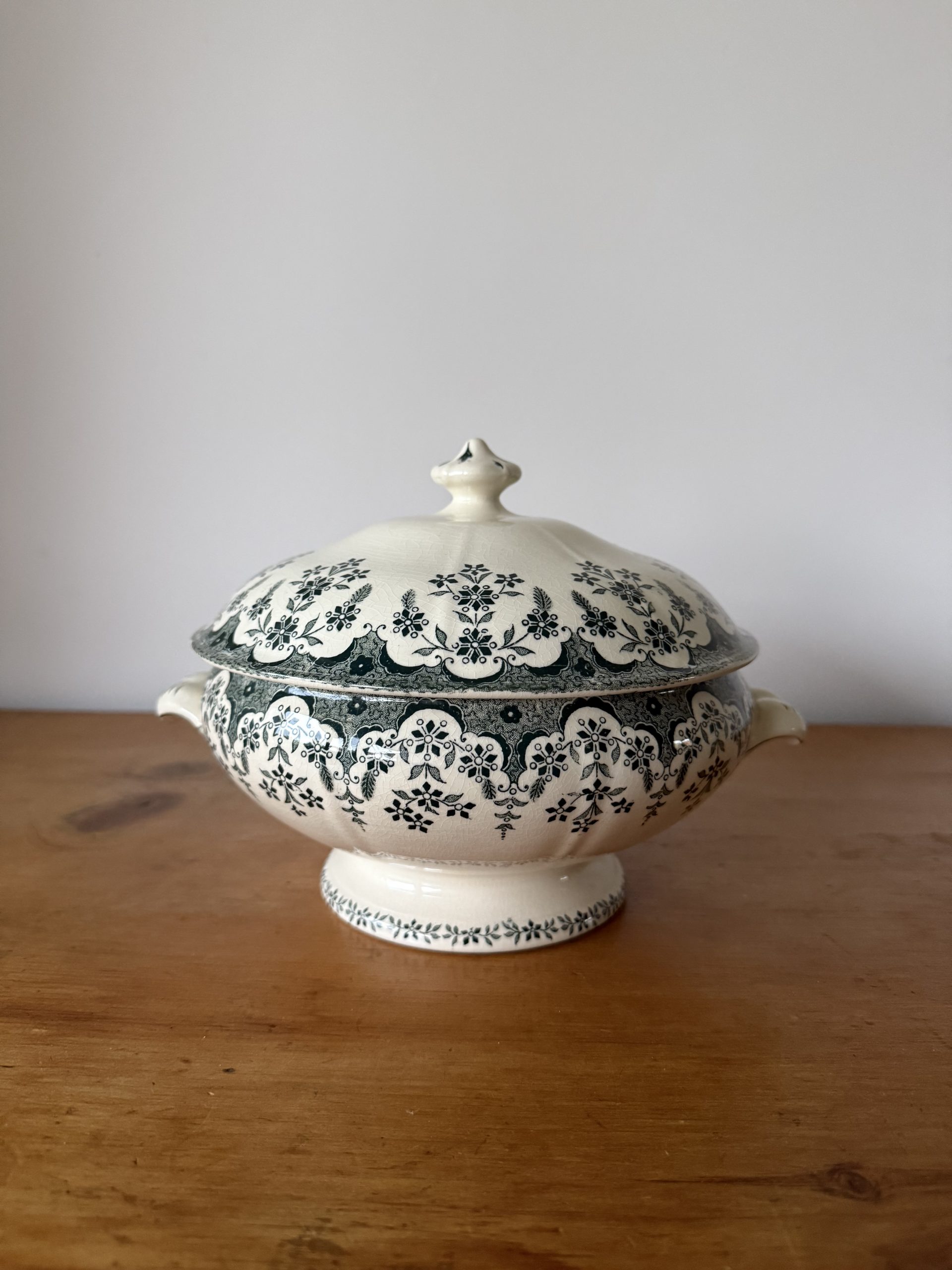 Preciosa legumbrera de loza antigua francesa “Sarreguemines”
