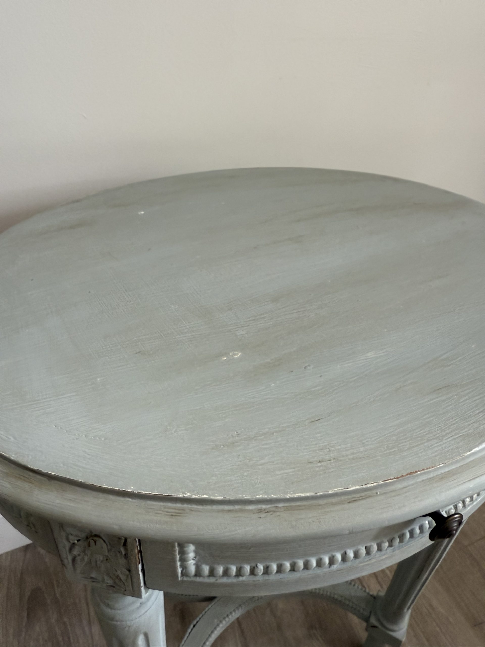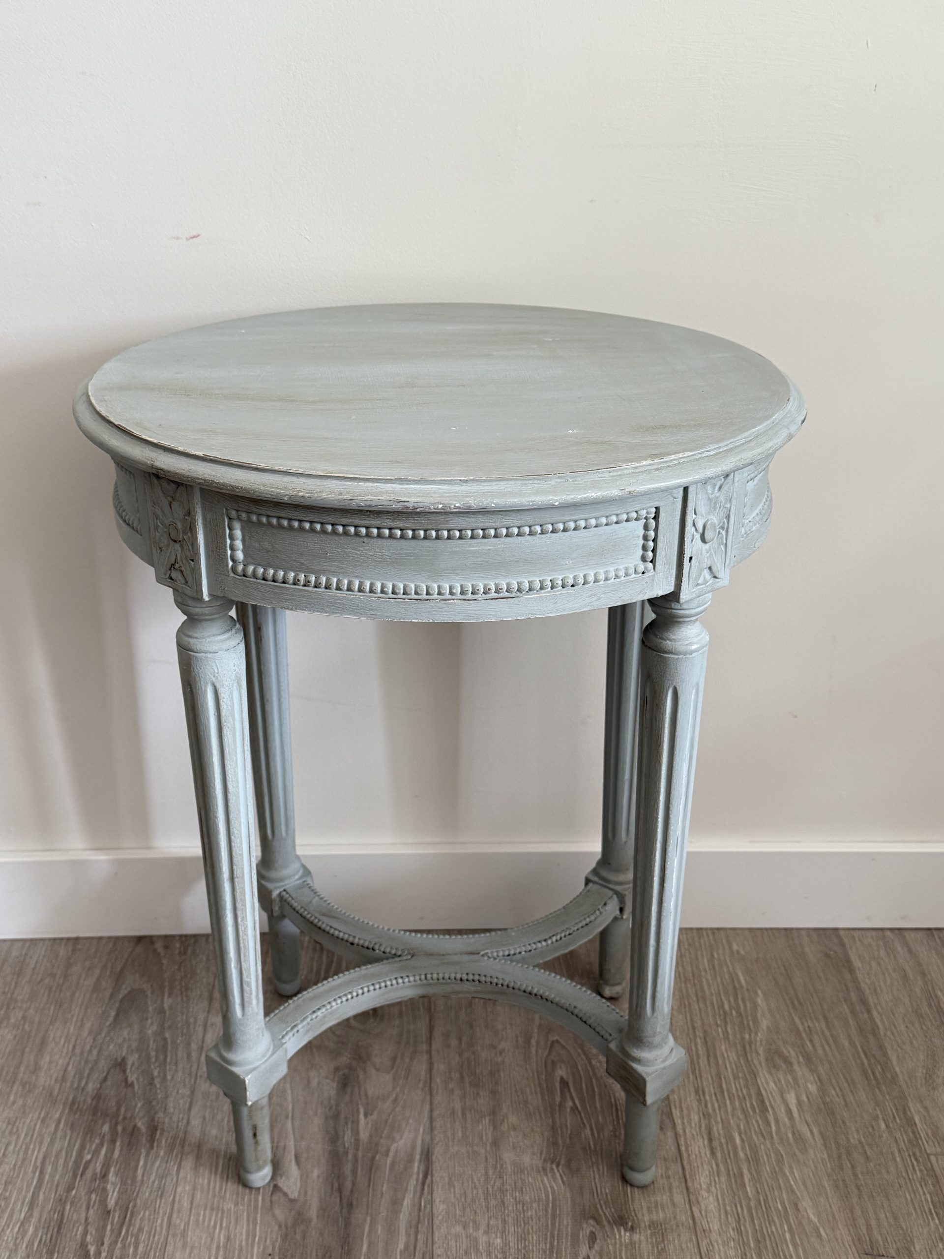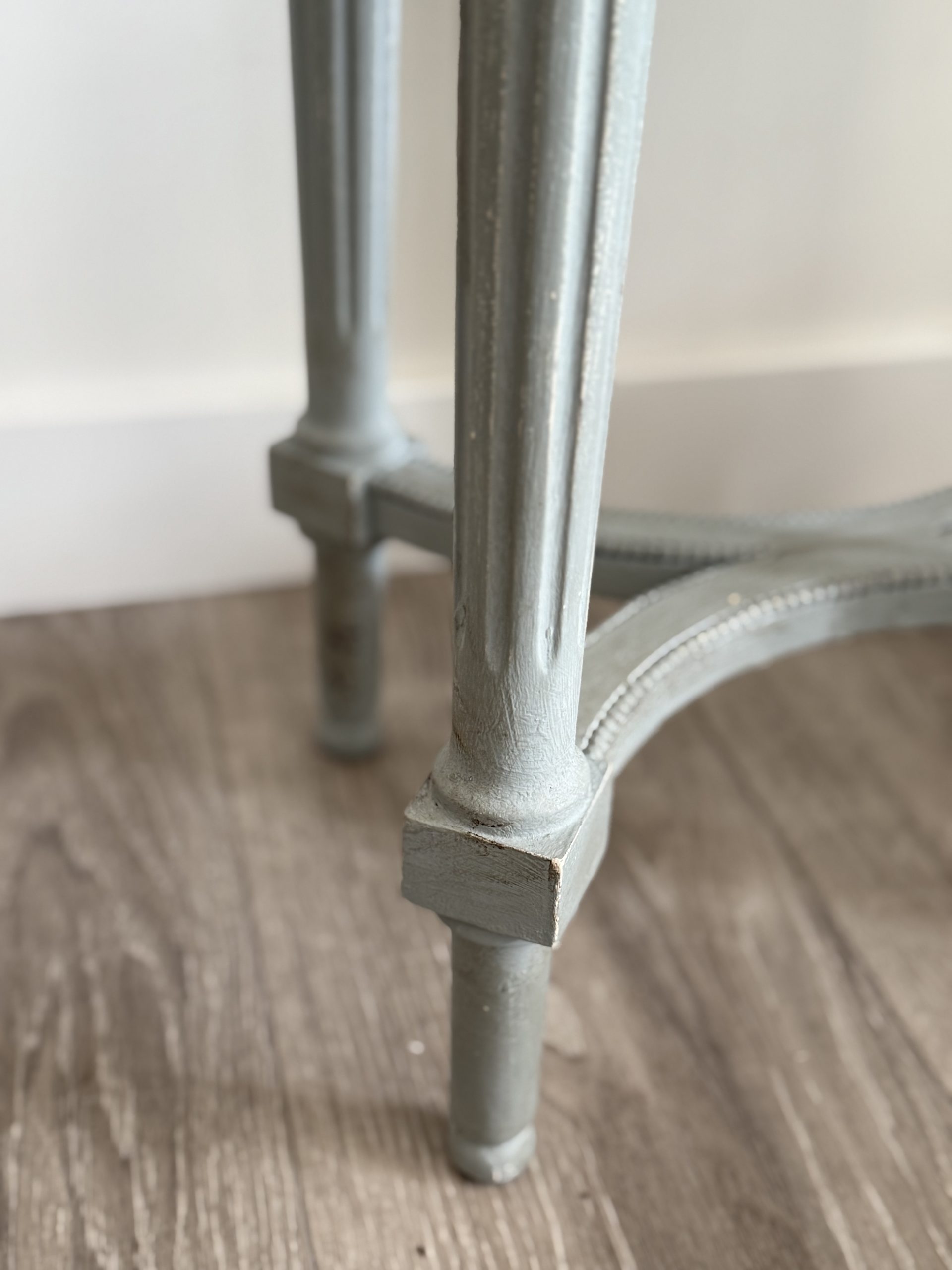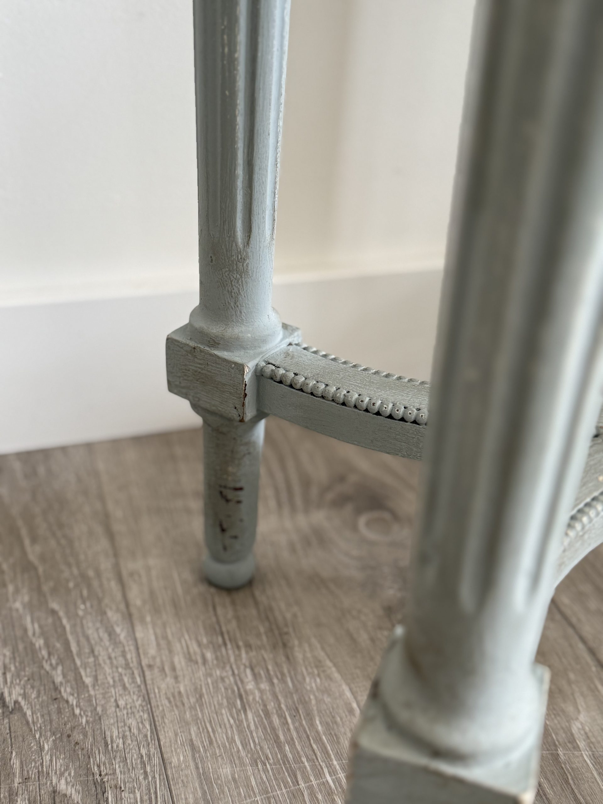 Patinada en azul envejecido, se trata de una pieza con mucho encanto.