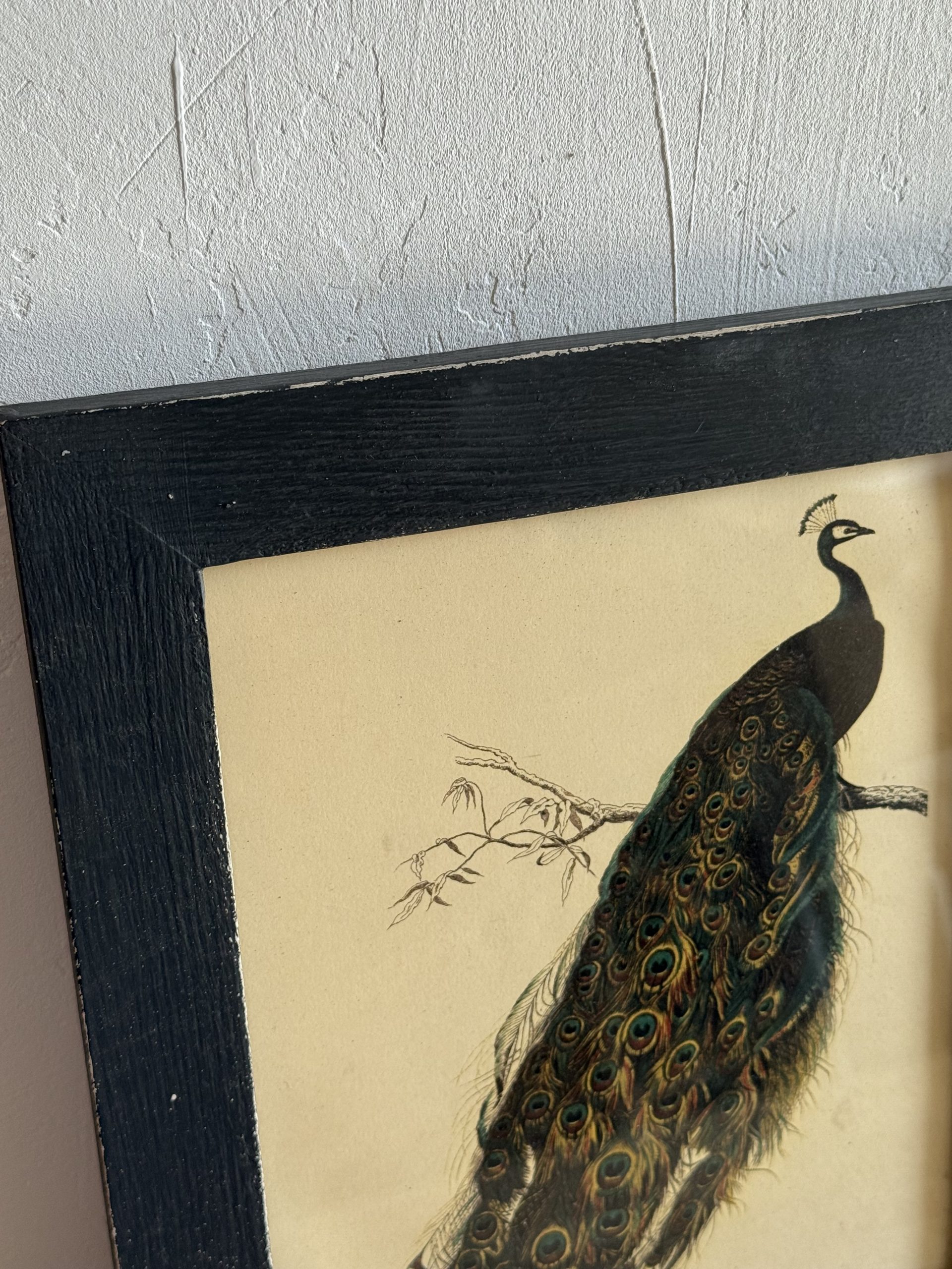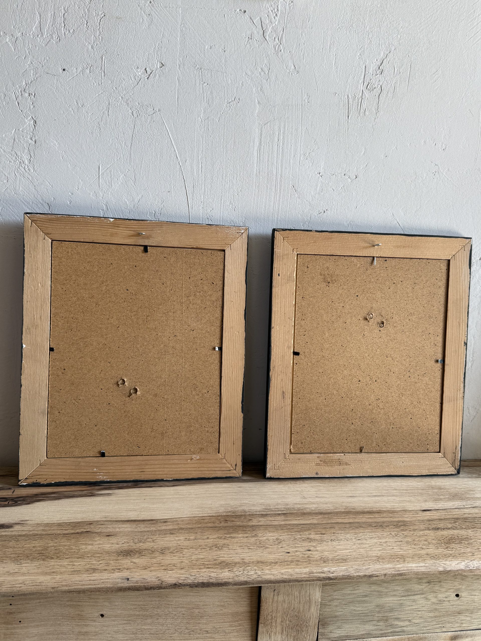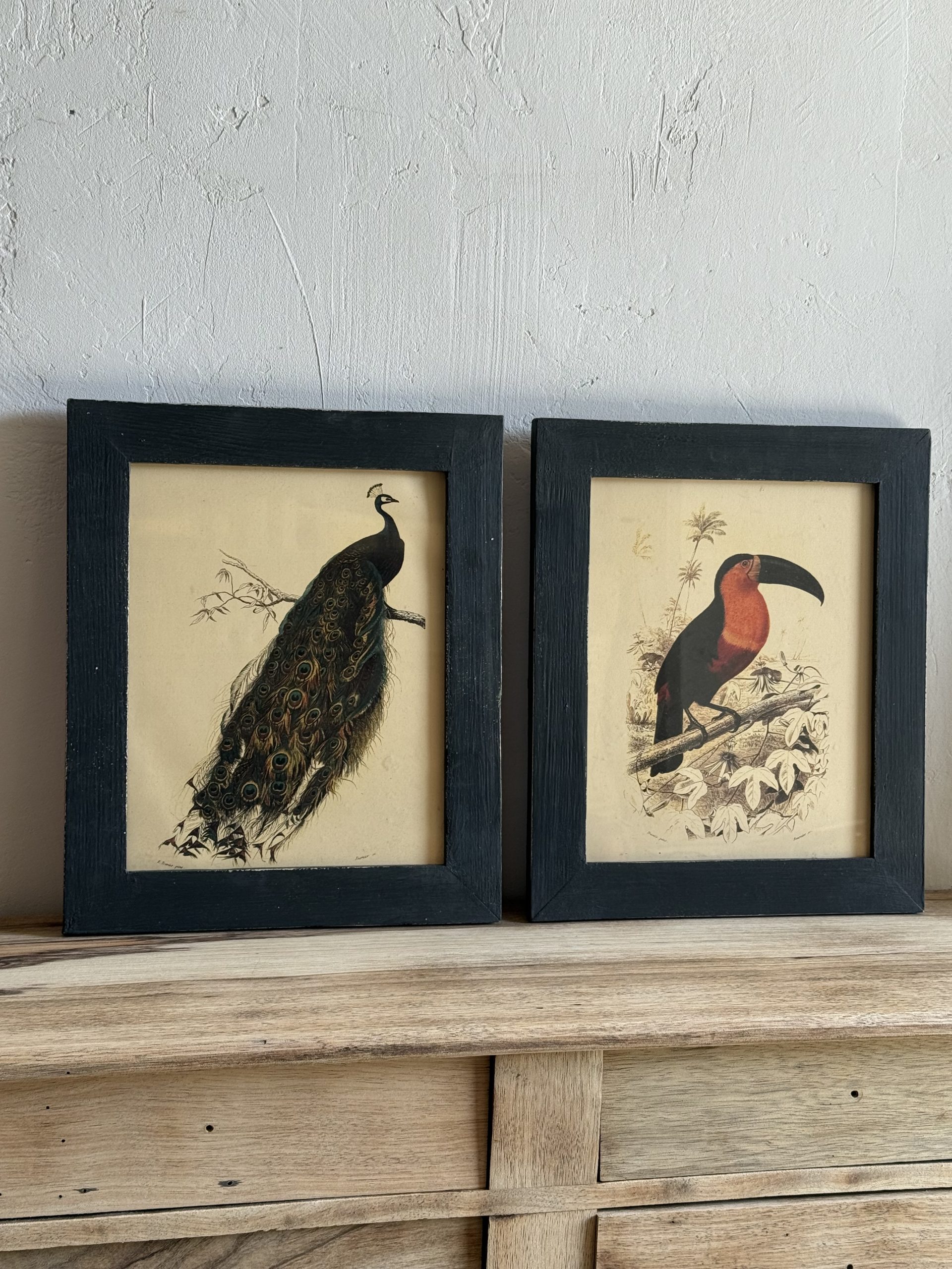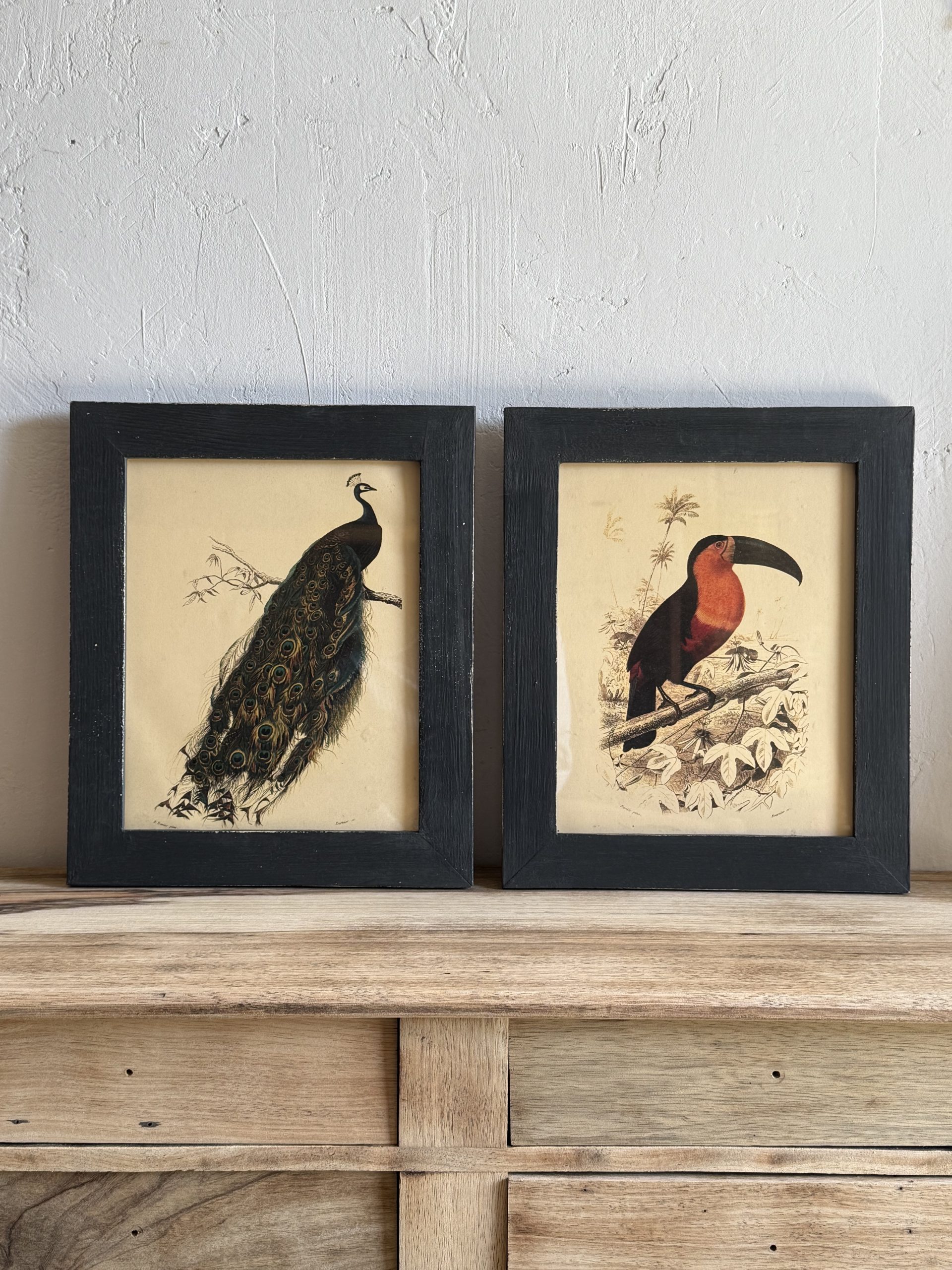 Se trata de dos láminas de aves enmarcadas con madera patinada en negro.