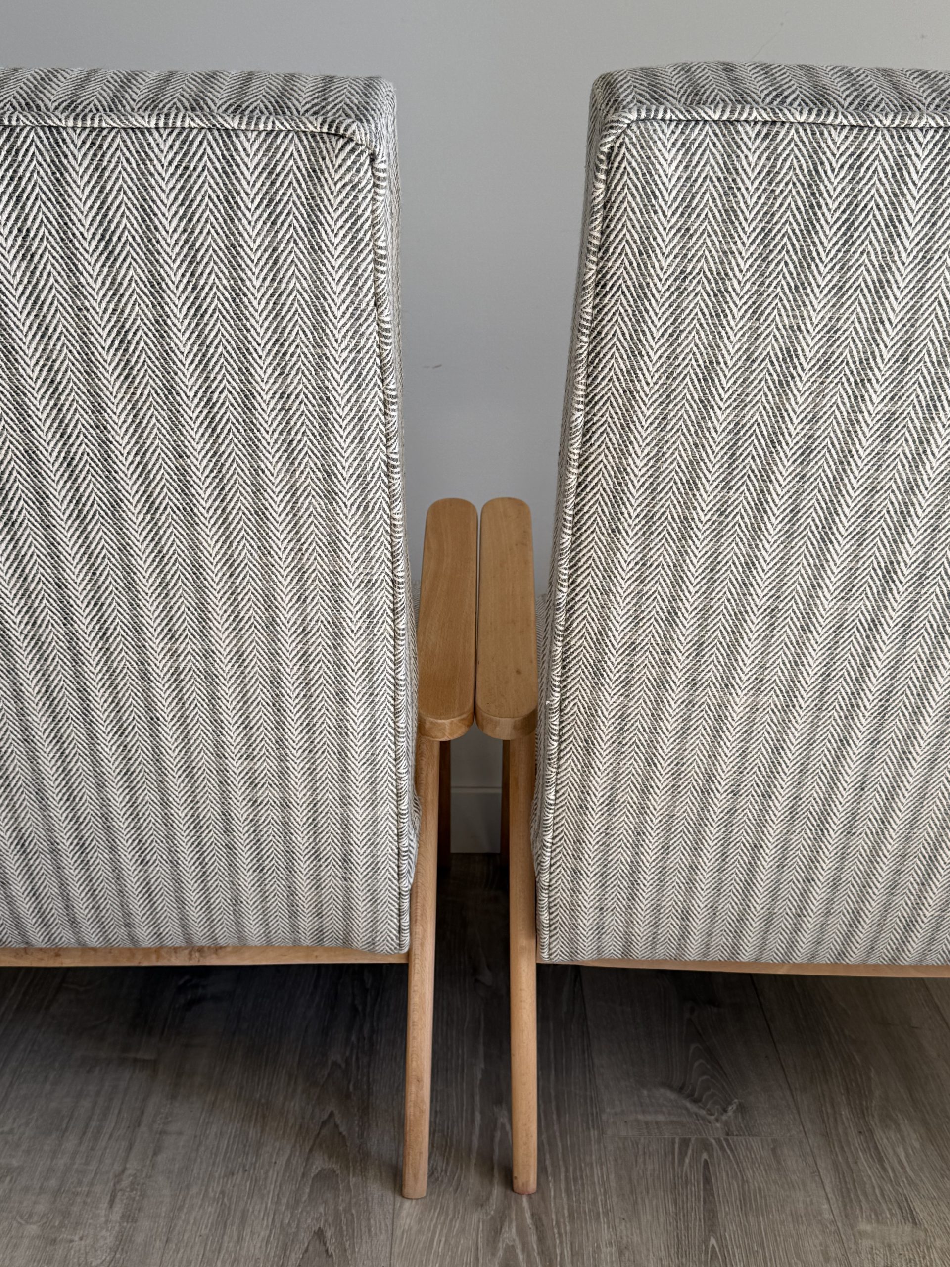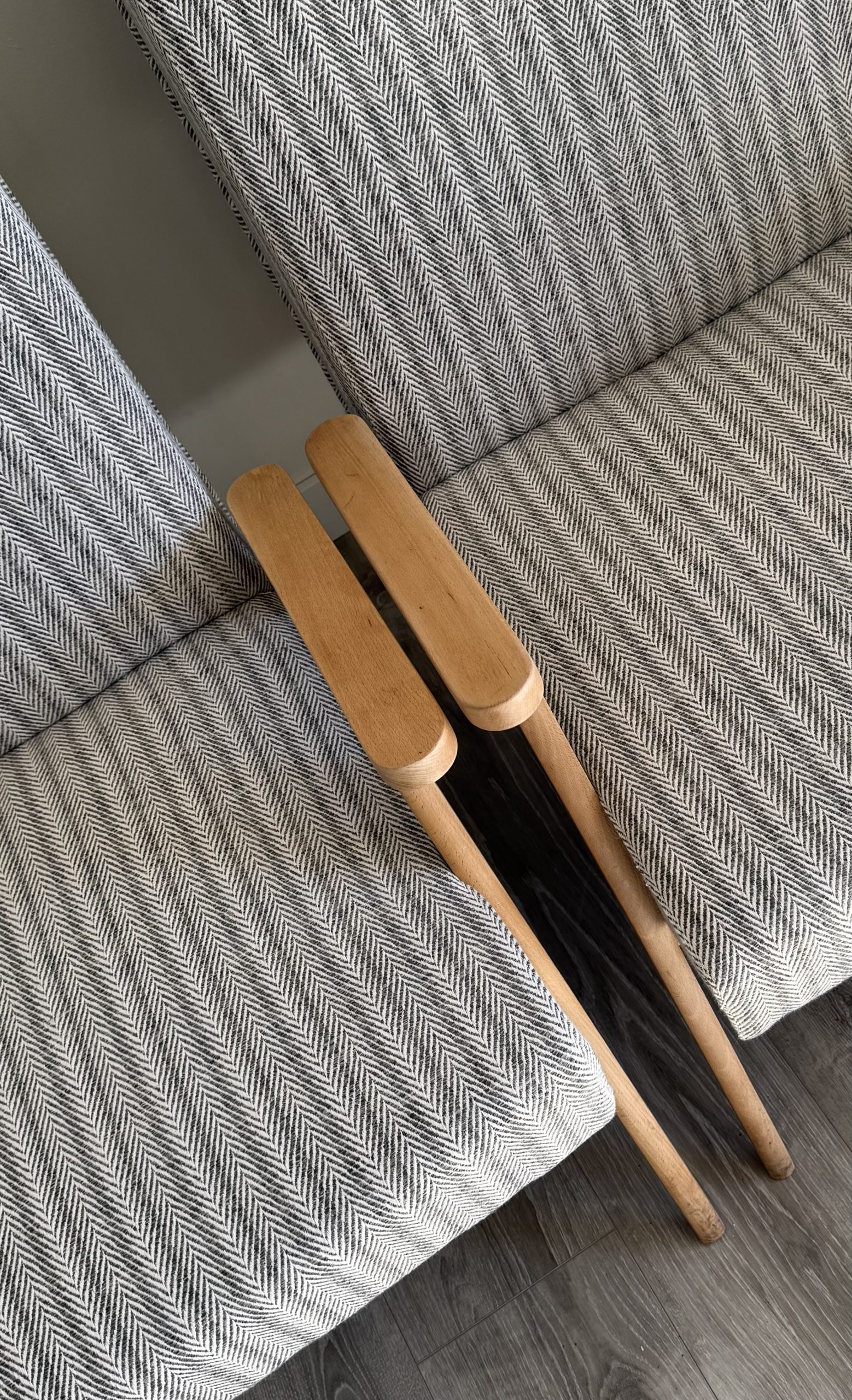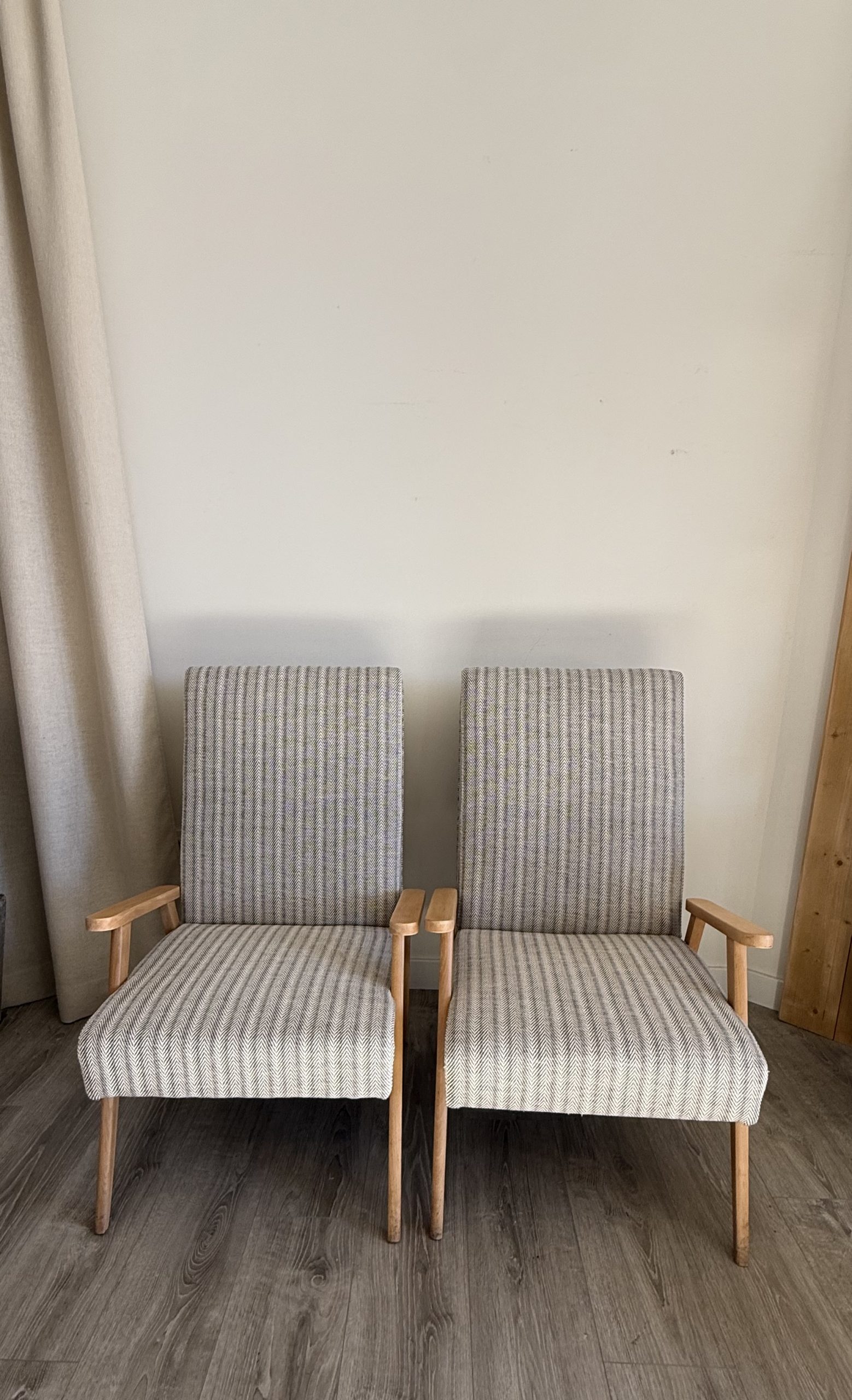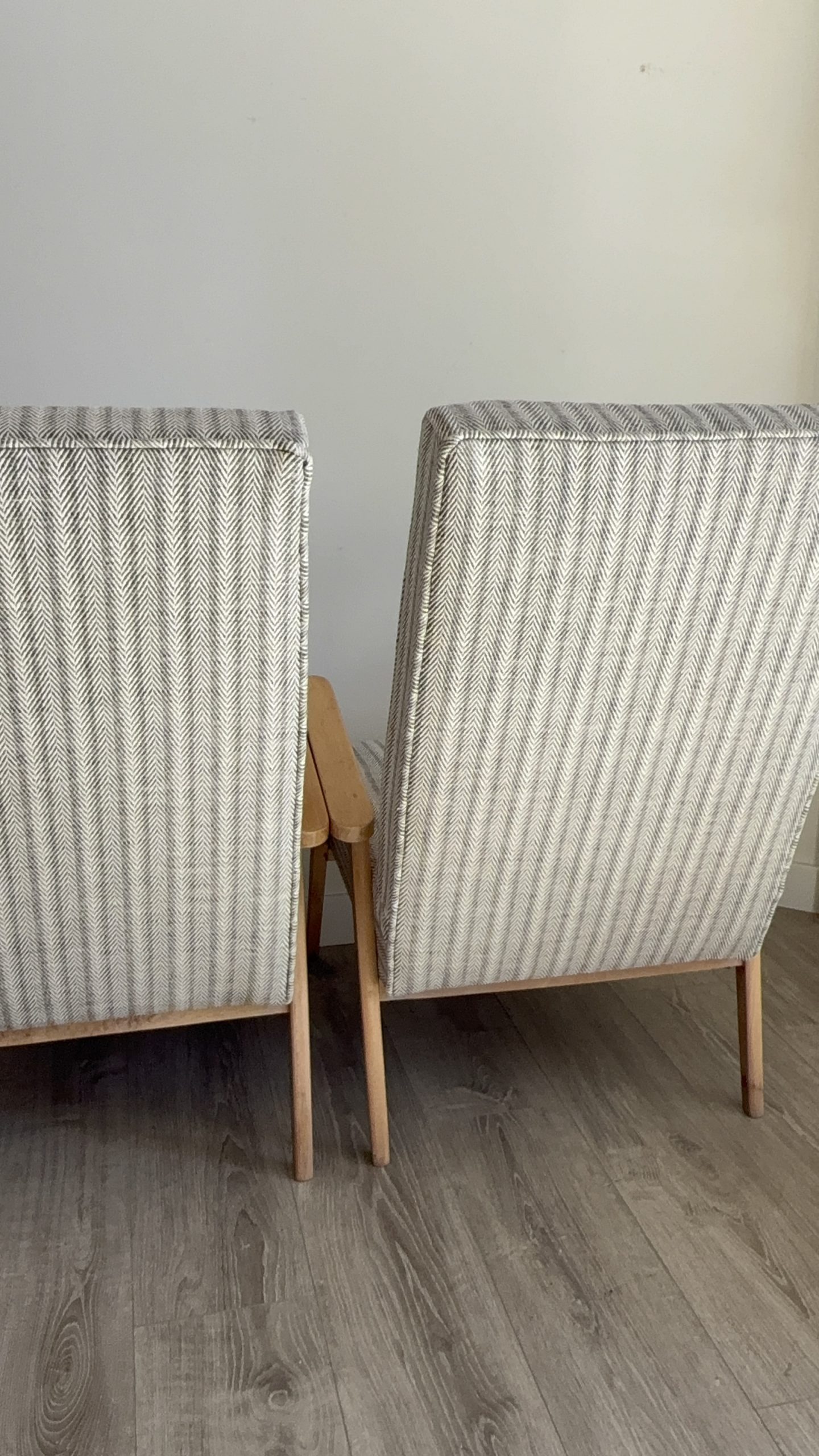 Han sido restauradas en nuestro taller y recién tapizadas con tejido de espiga actual que resulta ser una tonalidad neutra y fácil de integrar en tu Deco.