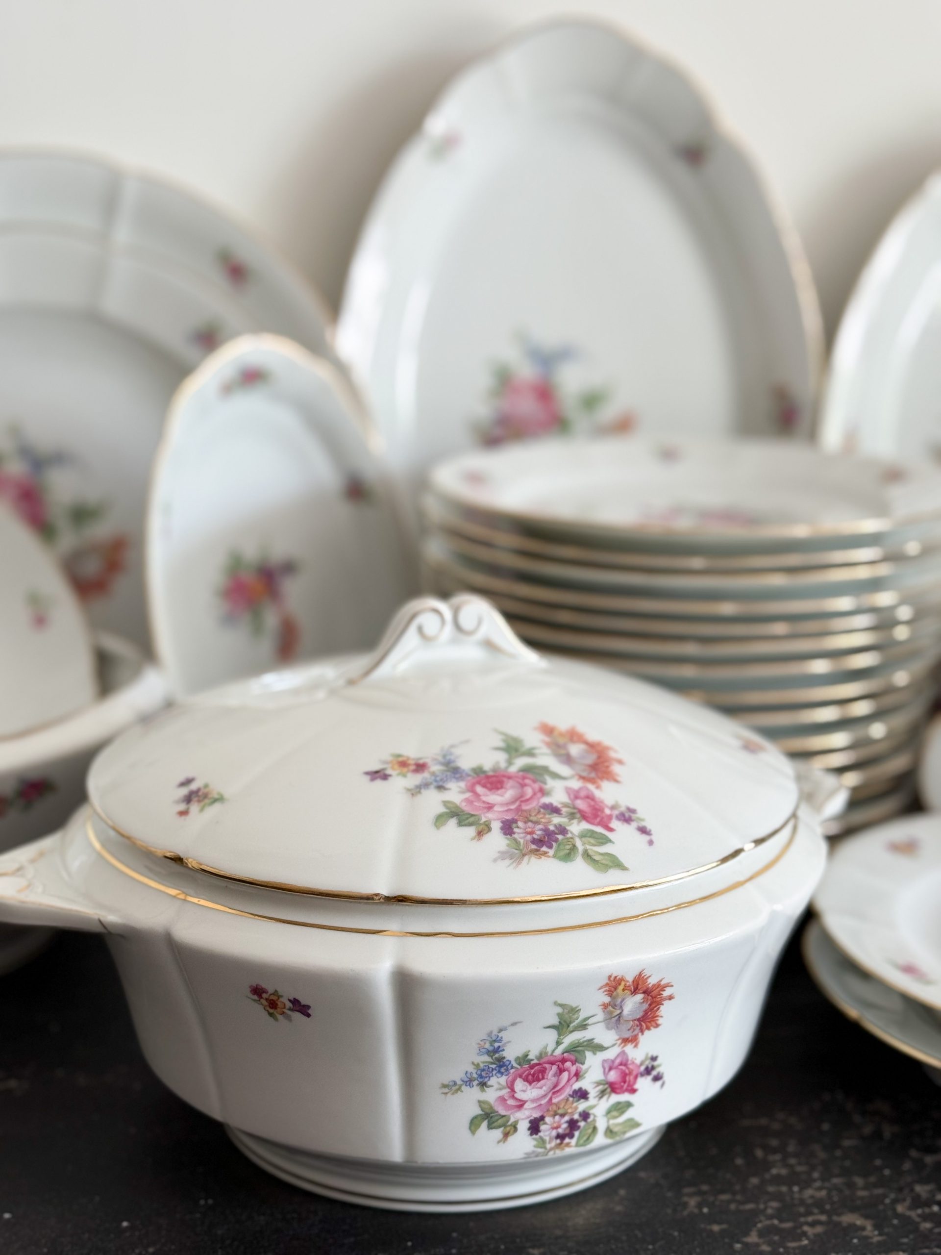 Se trata de una vajilla antigua, por lo que alguna pieza puede tener alguna pequeña marca de uso o del paso del tiempo.