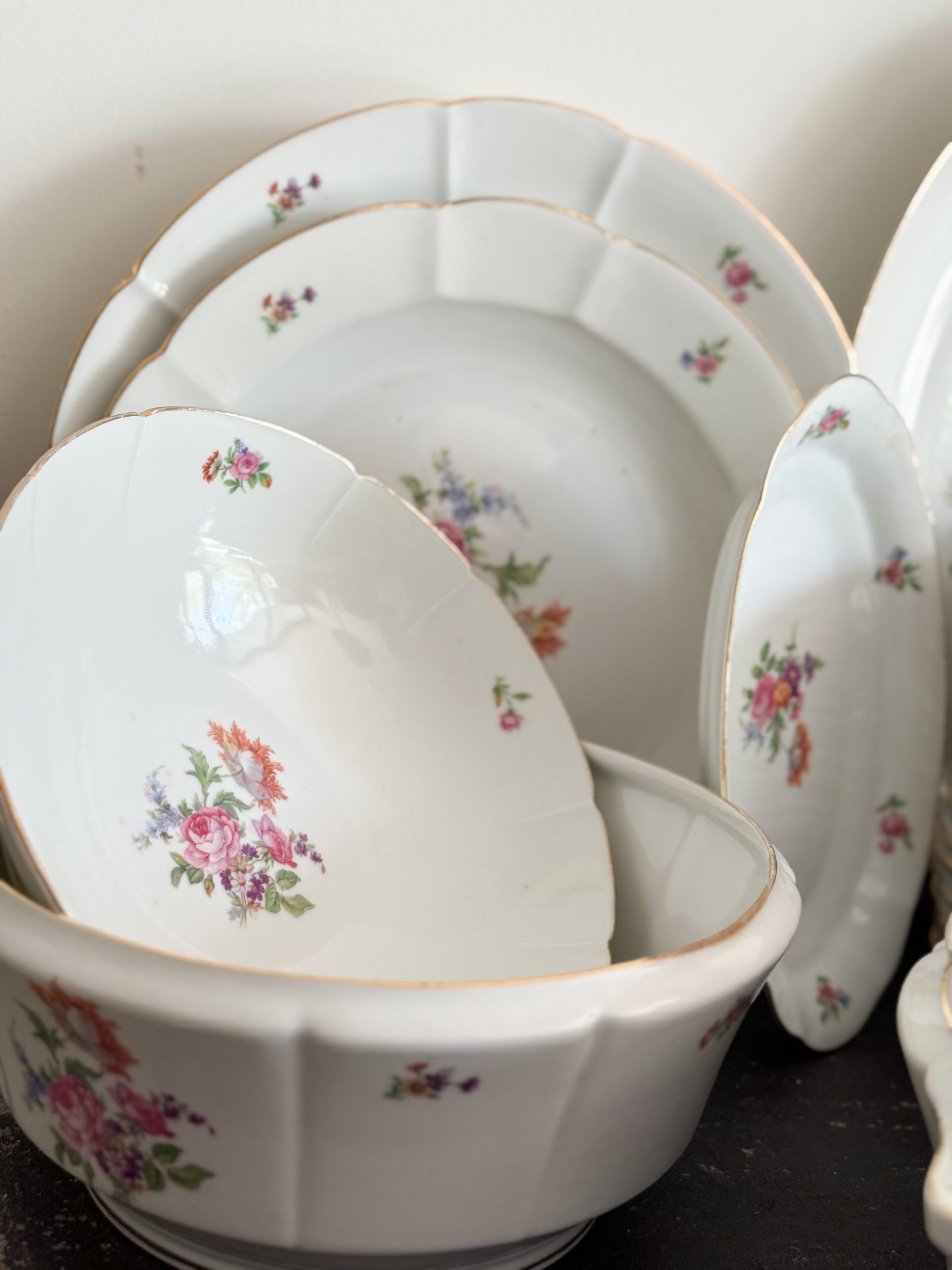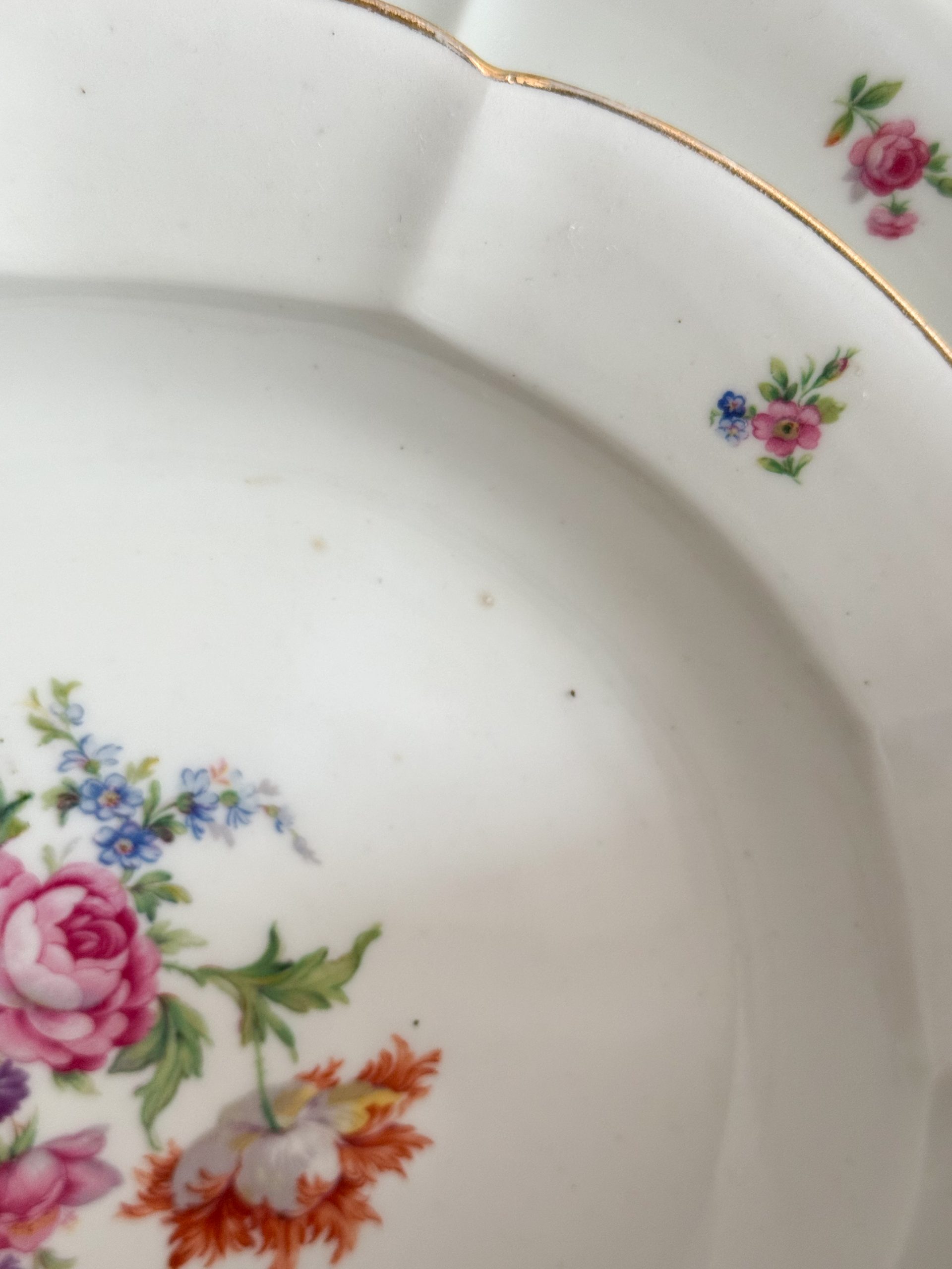 Decorada con motivos florales y filo dorado, es exquisita. Nos encanta el diseño, también por su gran calidad. Data de principios S XX.